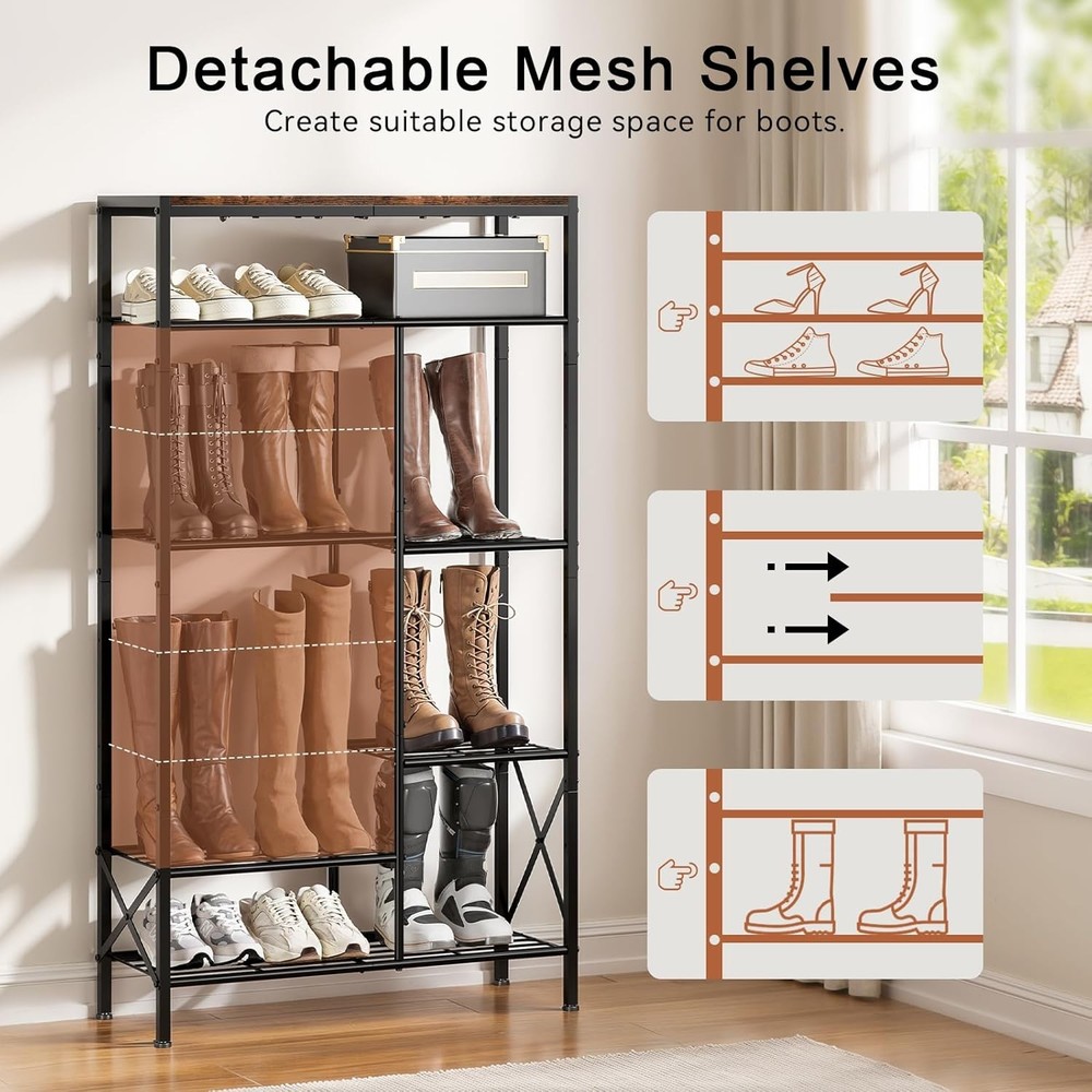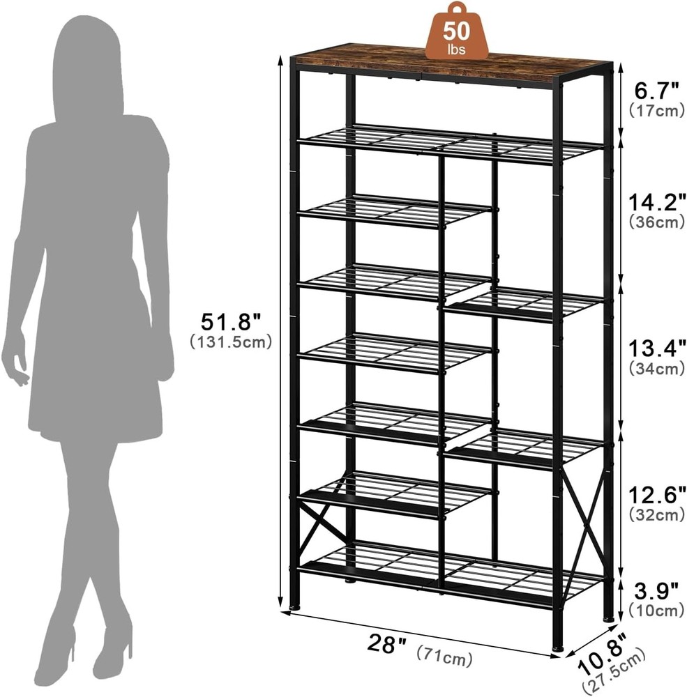 Large Capacity Shoe Rack: This shoe rack offers spacious, tiered storage, holding 3-4 pairs of shoes per layer, with a 8-tier structure that fulfills family storage needs. It also serves as a display area for bags, flowers, and family photos, keeping the space organized Boot-Specific Compartments: The shoe storage rack with varying spacing design fits all types of footwear. Besides the 3 specially designed areas for high boots on the side, you can also remove some mesh shelves to customize more storage options for boots Sturdy & Stable: Constructed with high-quality particleboard and a metal frame, the shoe organizer is sturdy and robust. Each mesh shelf can bear a weight of 22 lb, while adjustable feet and an anti-tip device enhance stability for safe a... Happylistings 8-Tier Shoe Rack, Shoe Storage Organizer With Boots Storage, Large Capacity Shoe Shelf Holds 20-23 Pairs Of Shoes, Durable And Stable, For Entryway, Closet, Hallway, Dorm Room, Rustic Brown Large Capacity Shoe Rack: This shoe rack offers spacious, tiered storage, holding 3-4 pairs of shoes per layer, with a 8-tier structure that fulfills family storage needs. It also serves as a display area for bags, flowers, and family photos, keeping the space organized Boot-Specific Compartments: The shoe storage rack with varying spacing design fits all types of footwear. Besides the 3 specially designed areas for high boots on the side, you can also remove some mesh shelves to customize more storage options for boots Sturdy & Stable: Constructed with high-quality particleboard and a metal frame, the shoe organizer is sturdy and robust. Each mesh shelf can bear a weight of 22 lb, while adjustable feet and an anti-tip device enhance stability for safe and reliable use, can hold larger and heavier shoes and items Multi-Scene Applicability: Combining a vintage brown panel with a black frame, the shoe shelf exudes a strong industrial retro vibe.Wide applicability, large storage capacity, and maintaining a clean space. Its vertical, space-saving design fits well in the entrance, hallway, or cloakroom, blending practicality with aesthetics Easy Assembly: The overall structure of the tall shoe rack is simple, with all parts numbered and accompanied by illustrated instructions and necessary installation tools. Just follow the instructions, and you'll easily complete the assembly.Warm Tips: Our shoe rack has anti-tip kits that will help you secure the corner shoe rack to the wall for safer use Item Specifics Brand Unbranded Type Free Standing Shoe Racks Color Rustic Brown Room Type Entryway, Clost, Hallway Number of Shelves 8 Special Feature Space Saving, Durable, Heavy Duty Product Dimensions 27.96"D x 10.83"W x 51.78"H Style Industrial Size 8-tier Assembly Required Yes Item Weight 15.84 pounds #521,113 in Home & Kitchen (See Top 100 in Home & Kitchen) #521,113 in Contact Us 1.Dear customers, we appreciate your business, our aim is to provide Top Level Customer Service,if you are satisfied with our service, please leave us a 5 star positive feedback . 2.If you have any question or concern about your eBay order, please feel free to let us know. We will try our best to reply all questions within 24 hours. However, no answer will be replied during weekends or holidays. Please allow up to 48 hours delay in receiving our response after long weekends or holidays. 3.Please via eBay Message for a solution for resolutions before leaving negative feedback, we strive to providing the greatest service and bringing the highest satisfaction to all of our customers. Shipping 1.We usually ship within 3-5 business days of receiving cleared payment., and we provide Free Shipping for most items. 2.Fast shipping is very important for us. We use multiple fulfilment warehouse around the United States. We only ship to the lower 48 States and do not ship to PO Boxes. 3.Please make sure the correct Ship-To address is entered before checking out. Once the payment is completed, you may not be able to change the shipping address. We shall not be held responsible for any wrong or undeliverable addresses. Returns 1.We provide 14 days return upon the buyer received the item. It must be in good condition and you will undertake the returned shipping cost. 2.We will offer replacement or refund for all DEFECTIVE items (not including damage resulting from accidents / abuse / misuse / improper care), but a photo is needed for our reference beforehand and should be reported to us within 7 days from purchase date. 3.All items are brand new and have been passed the quality check. All are packed in a good condition before item dispatch. Payment We accept PayPal payment,PayPal Credit,Credit card or debit card and so on. Payment should be completed within 4 (Four) days of auction closing. Or unpaid dispute will be filed for closing auction. We will leave a positive feedback immediately after payment is received. We appreciate a positive feedback as much as you do. If for some reason there is any issue with the purchase, please contact us prior to leaving feedback, we will be glad to work together and provide a satisfying solution. Happylistings DESCRIPTION PAYMENT SHIPPING RETURN POLICY CONTACT US Help & Info Payment Policy Shipping Policy Return Policy FAQ About Us 8-Tier Shoe Rack, Shoe Storage Organizer With Boots Storage, Large Capacity Shoe Shelf Holds 20-23 Pairs Of Shoes, Durable And Stable, For Entryway, Closet, Hallway, Dorm Room, Rustic Brown Large Capacity Shoe Rack: This shoe rack offers spacious, tiered storage, holding 3-4 pairs of shoes per layer, with a 8-tier structure that fulfills family storage needs. It also serves as a display area for bags, flowers, and family photos, keeping the space organized Boot-Specific Compartments: The shoe storage rack with varying spacing design fits all types of footwear. Besides the 3 specially designed areas for high boots on the side, you can also remove some mesh shelves to customize more storage options for boots Sturdy & Stabl