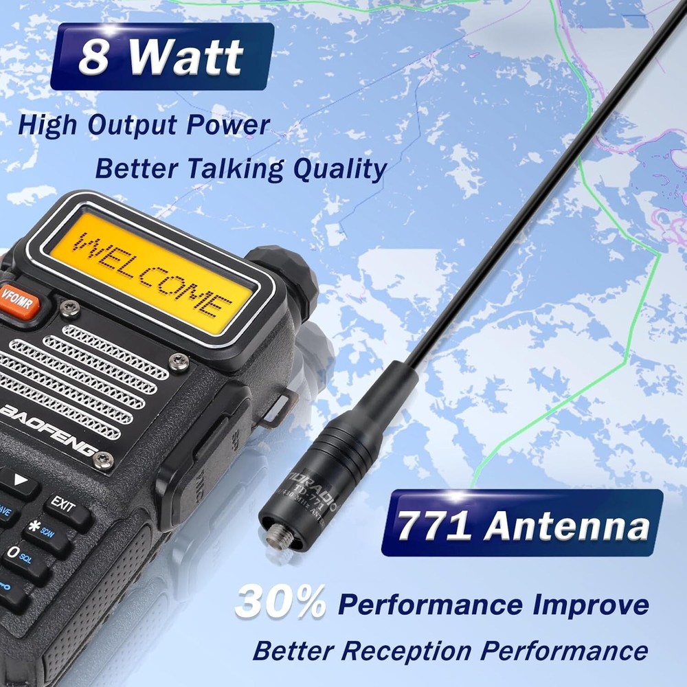 This ham radio kit is a game-changer for outdoor adventures and emergencies! The powerful 8W output and long 771 antenna ensure clear, long-range communication, while Bluetooth connectivity adds modern convenience. With 155 private codes and 128 memory channels, it covers all essential frequencies. Durable, reliable, and packed with features—perfect for survivalists and radio enthusiasts who need top-notch performance in any situation. A must-have for staying connected when it matters most!