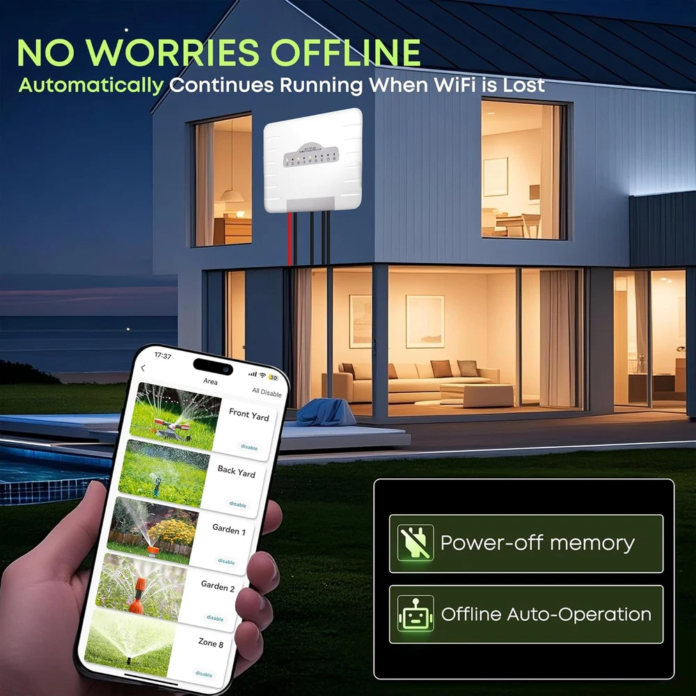 This smart sprinkler controller is a game-changer! It works flawlessly with almost any system, and the weather-aware feature saves water by skipping unnecessary watering. Super easy to set up, and the app makes scheduling effortless. My lawn has never looked better, and I love knowing I’m not wasting water. Highly recommend for a hassle-free, eco-friendly irrigation solution!