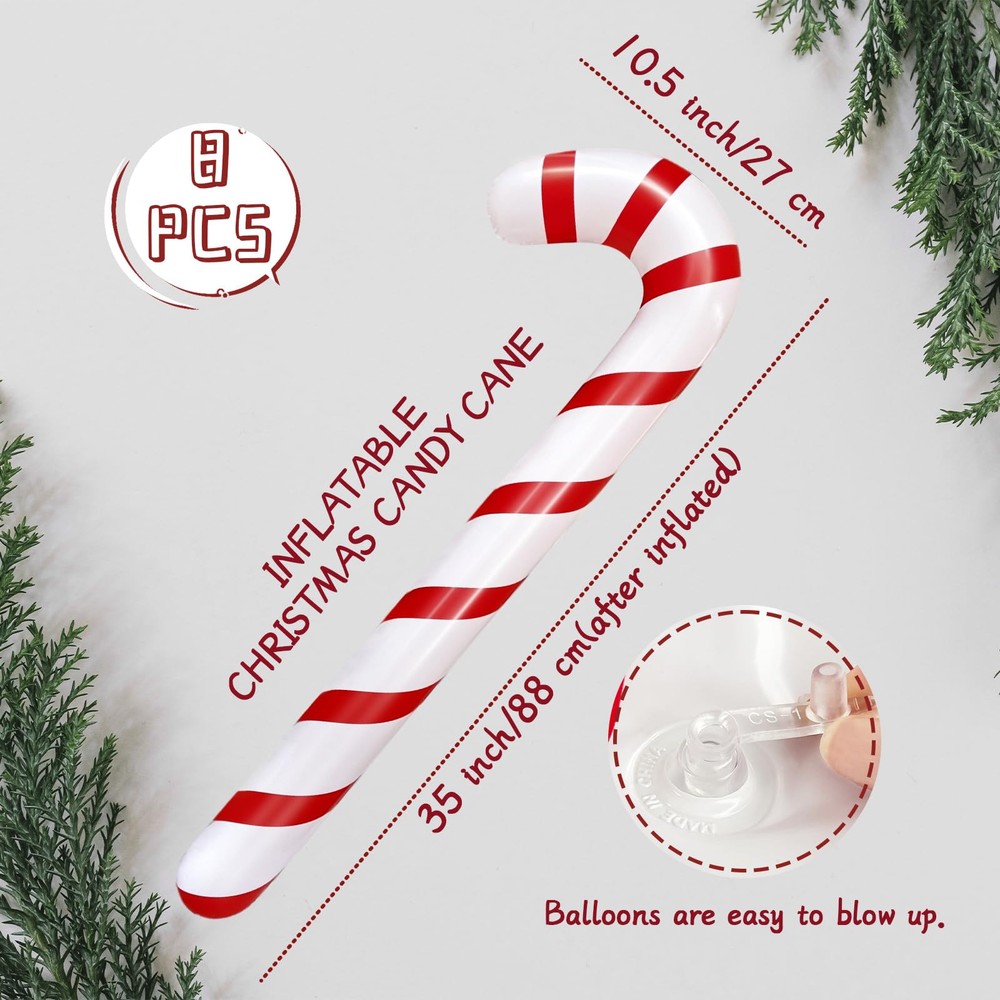 【Value Package】You will get 8 pcs inflatable Christmas candy cane,each of them are 35 inch after inflated.Suitable for indoor and outdoor decorations.Cheer up your house! 【High Quality】The inflatable Christmas cane utilized with thickened PVC material.Lightweight and waterproof.It can be used many times.Close the transparent lid after inflation,not easy to deflate,does not affect the aesthetics. 【Practical Design】The candy cane shape in red and white,which is classic Christmas color.It is lightweight enough to hang on walls,windows,or curtains if need be.You can lean it up in a corner or hook it over a stair rail.can play without worrying about getting hurt! 【Easy to Use】Candy cane inflatables can be inflated by mouth air or hand pump.When you don't use it, open the vent hole and deflate it,fold and it without taking up space,and continue to use it next year. 【Widely Application】They are the good party decor favors.Also a ideal to be used for a Santa scene set up.You can give your friends and families as gifts,and they will be very pleased to get these Christmas ambiance decoration.