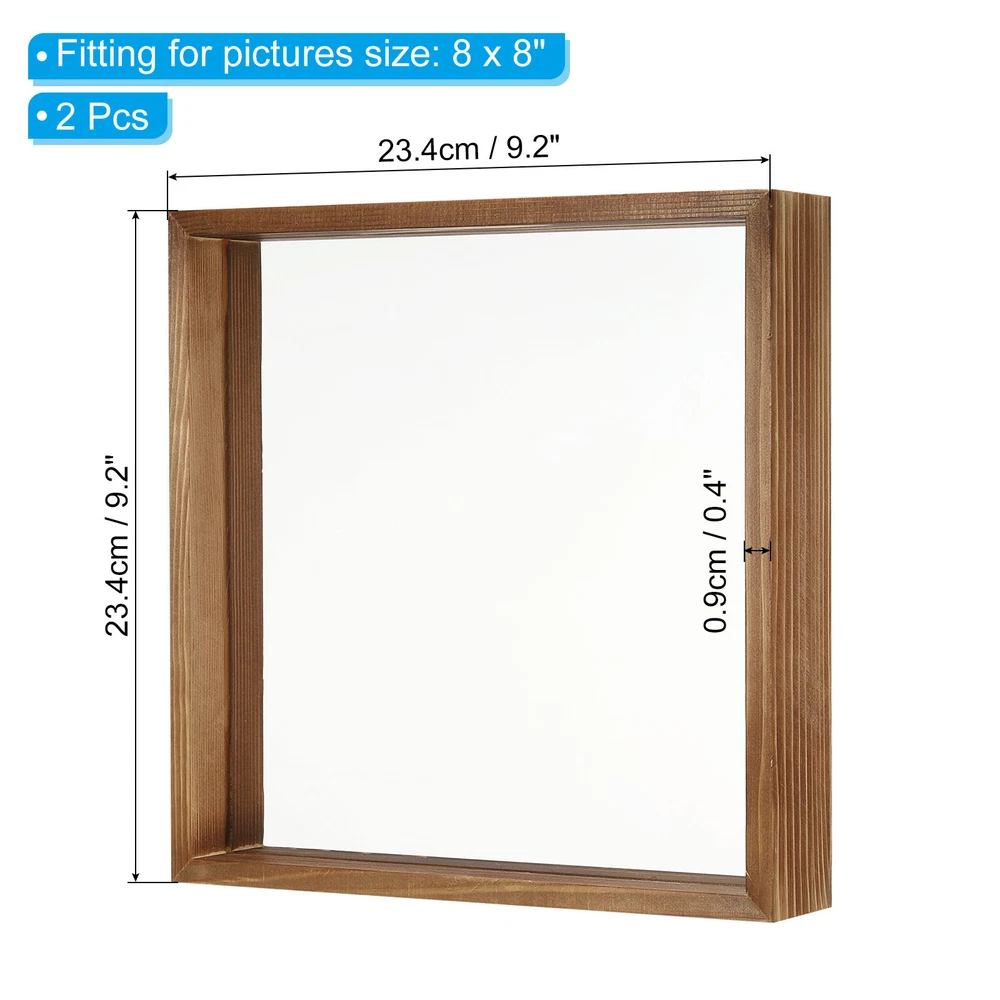 Document The wooden frame is suitable for pressed flowers, dried leaves, artwork, certificates and specimens. You can display the pressed flowers dried leaf frame on the table vertically or horizontally, and the transparent double-sided design allows you to see both sides of the dried flowers clearly.SpecificationColor: BrownMaterial: Acrylic, WoodenFitting for pictures size: 8 x 8 inchSize: 9.2 x 9.2 x 0.4 inch/23.4 x 23.4 x 0.9cm(L*W*T)Packing List: 2Pcs x Wood Picture FramesAdvantageThe frame is made of quality wood, sturdy and durable, not easy to crack or deform. Comes with two pieces of acrylic panels, which are lighter and more durable than ordinary glass.InstructionThere is a crack at the top of the pressed flower frame, just remove the acrylic panel and clip your photo or plant specimens inside. NOTE: Remove the protective film covering the acrylic panel before use. The thickness of the built-in specimens does not exceed 0.8mm. 8x8 Wood Picture Frames 2 Pack Double Sided Acrylic Plant Frame Brown The wooden frame is suitable for pressed flowers, dried leaves, artwork, certificates and specimens. You can display the pressed flowers dried leaf frame on the table vertically or horizontally, and the transparent double-sided design allows you to see both sides of the dried flowers clearly. Specification Color: Brown Material: Acrylic, Wooden Fitting for pictures size: 8 x 8 inch Size: 9.2 x 9.2 x 0.4 inch/23.4 x 23.4 x 0.9cm(L*W*T) Packing List: 2Pcs x Wood Picture Frames Advantage The frame is made of quality wood, sturdy and durable, not easy to crack or deform. Comes with two pieces of acrylic panels, which are lighter and more durable than ordinary glass. Instruction There is a crack at the top of the pressed flower frame, just remove the acrylic panel and clip your photo or plant specimens inside. NOTE: Remove the protective film covering the acrylic panel before use. The thickness of the built-in specimens does not exceed 0.8mm. Hot Item Payment 1.We accept eBay payment . 2.Payment must be received within 7 business days of auction closing. Shipping 1.We ship to your eBay or Paypal address. Please make sure your eBay and Paypal address is correct before you pay. 2.Items will be shipped within 1-3 business day when we received payment. 3.Delivery time depends on destination and other factors. Description Policy 8x8 Wood Picture Frames 2 Pack Double Sided Acrylic Plant Frame Brown The wooden frame is suitable for pressed flowers, dried leaves, artwork, certificates and specimens. You can display the pressed flowers dried leaf frame on the table vertically or horizontally, and the transparent double-sided design allows you to see both sides of the dried flowers clearly. Specification Color: Brown Material: Acrylic, Wooden Fitting for pictures size: 8 x 8 inch Size: 9.2 x 9.2 x 0.4 inch/23.4 x 23.4 x 0.9cm(L*W*T) Packing List: 2Pcs x Wood Picture Frames Advantage The frame is made of quality wood, sturdy and durable, not easy to crack or deform. Comes with two pieces of acrylic panels, which are lighter and more durable than ordinary glass. Instruction There is a crack at the top of the pressed flower frame, just remove the acrylic panel and clip your photo or plant specimens inside. NOTE: Remove the protective film covering the acrylic panel before use. The thickness of the built-in specimens does not exceed 0.8mm. Hot Item Payment 1.We accept eBay payment . 2.Payment must be received within 7 business days of auction closing. Shipping 1.We ship to your eBay or Paypal address. Please make sure your eBay and Paypal address is correct before you pay. 2.Items will be shipped within 1-3 business day when we received payment. 3.Delivery time depends on destination and other factors.