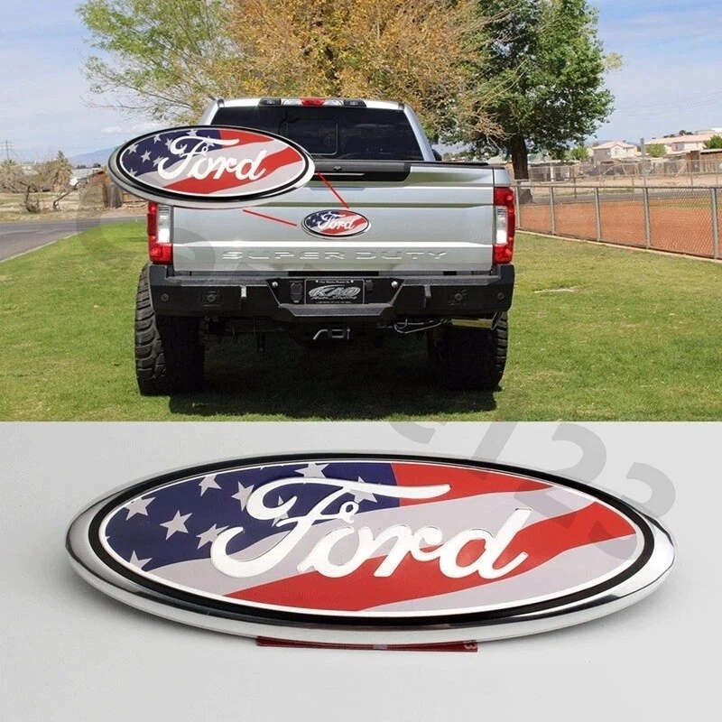 Notice: Please confirm your measure emblem size before buying!!!!!!!!!!!!!! Most model: Front: Length: 9 inches (23cm) Width: 3 .5 inches (9cm) Badge: Length: 7 inches (17.5cm) Width: 2.75 inches (7cm) ** It will fit in the rear luggage compartment and the front grille. Please make sure your truck requires a 9 inch badge, some custom models have different sized badges (like a 7 inch badge). Package: 1pc Material: ABS base + aluminum alloy logo Size: 17.5cm * 7cm (7 inches); 23cm * 9cm(9 inches) Adhesion: double-sided tape Fit for: Ford Color: American color, silver on black, red on black, all black, silver on black, original blue Color, American Gray Notice: - Please allow slight dimension difference due to different manual measurement.(The size error range is ±1-3mm.) - Due to the light and screen setting difference, the item's color may be slightly different from the pictures. - Please make sure your car can use it first! - If there is any question with the product, please contact us!