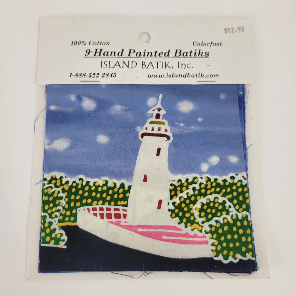 Theme:LighthouseSuitable For:Quilting and craftsColor:BatikBrand:Island Batik, Inc.Features:Hand-PaintedUPC:Does not applyPattern:Batikgtin13:Does not applyUnit of Sale:9 hand-painted blocksLength/Amount:SquaresMaterial:Cotton