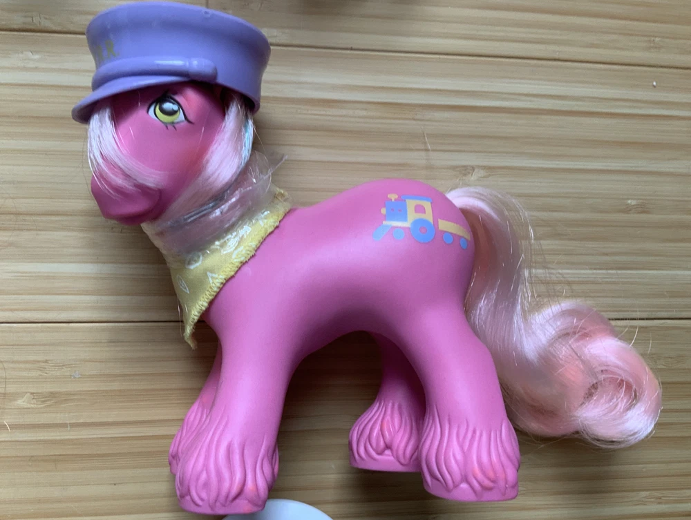 This lot is for ALL 9 My Little Pony Big Brother ponies! All with their hats and bandanas! These have been carefully stored with their manes wrapped for over 20 years. That being said, they still have some dots and/or discoloration due to their age. This is a perfect way to collect all of the US-released Big Brother ponies at once, either for yourself or maybe a holiday gift for someone else! Please check all pictures thoroughly and ask any and all questions before buying! You will receive: Chief - yellow spots on body 4-Speed - body does have marks and discoloration WigWam - looks good Quarterback - some marks and discolorations Steamer - some pink dots, light pen mark (?) on muzzle Pirate - marks on body, face - you can see some under right eye and left nostril Tex - couple of very light marks, clean Slugger - couple of pink dots Salty - couple of light marks From a non-smoking home! FAST shipping from US seller!
