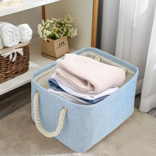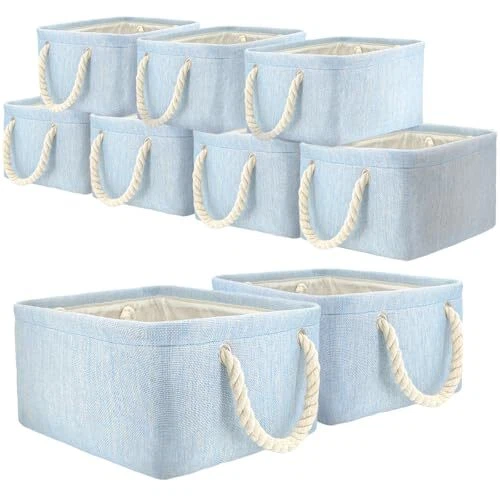 Return Policy Fast Delivery Trusted seller 9 Pack Storage Basket Bins & Decorative Baskets Fabric Storage Cubes Containers Bulk W/Handles for Office, Home, Books, Clothes, Bedroom, Closet (light blue) Product Description - MULTIPURPOSE USE : remote control, batteries, socks, accessories, suitable for jewelry, cosmetics, books, magazines, clothes basket, towel basket, Blankets, decorations, Office supplies, gifts, bathroom, craft room, Snacks, potato chips, Data cables. - STORAGE AND MOBILITY : You can put it in the trunk or on the back seat, Convenient for eating at outdoor picnics, Does not take up a lot of space, When carrying a wardrobe organizer, It is attached to the basket with metal grommets, The rope handle slides in and out of the shelf or closet with ease, And the handles themselves are made of soft cotton rope. - MATERIAL SUMMARY : The outer layer is made of durable cotton linen and the inner layer is eco - friendly EVA, reinforced by a metal brace around the top to keep the structure more complete, The perfect decorative storage box is sturdy and durable, this storage box will exceed your expectations for quality! - BEAUTIFUL AND PRACTICAL : The shelf basket can be wiped down with a cotton cloth as needed for easy cleaning, The classic woven cotton cord design is perfect for all home décor, Convenient Location, You can place it anyw, Decorative baskets are ideal for living rooms and bedrooms. - SIZE : 13.8 "L x 9.8 "W x 6.9 "H Medium fabric organizer can easily hold some of your everyday items at home, A perfect solution to some of your storage problems. Shipping Returns Payment Shipping Shipping is FREE to all addresses other than APO/PO boxes in the lower 48 states. All our stock ships from US-based warehouses. Shipped via USPS or UPS (depending on location and package weight) Unless stated otherwise, all orders will ship within 24-72 hours of your payment being processed. Check our feedback to see the great reviews of FAST shipping we offer. Returns Seller does not accept returns Payment We currently accept payment via eBay managed payments only. Once payment is cleared, we will dispatch your shipment within 1-3 business days. Please refer to the "Shipping" tab for more information regarding shipping speed to your destination.