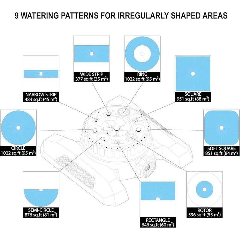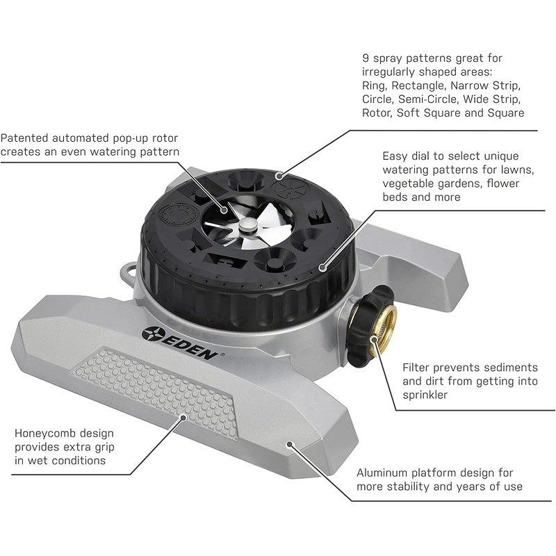 Clumping Cat Litter Odor Control Febreze Mountain Spring Ammonia Block 25lbs New 24.52 USD 25.81 USD Free shipping 5% off Ultra Strong Toilet Paper 24 Mega XL Rolls 4X Strength Soft Clean Clog Safe New 44.81 USD 47.17 USD Free shipping 5% off Woven Storage Basket Cotton Rope Organizer Baby Shower Gift Bathroom Decor New 19.57 USD 20.6 USD Free shipping 5% off Fabric Dresser Chest W/ 10 Drawers Side Pockets Hooks Metal Frame Organizer New 71.33 USD 75.08 USD Free shipping 5% off 16 Inch Shower Grab Bars 2 Pack Stainless Steel Non Slip Safety Handle New 22.09 USD 23.25 USD Free shipping 5% off Bathroom Hardware Set Towel Bar Hook Toilet Paper Holder Stainless Steel New 55.13 USD 58.03 USD Free shipping 5% off Glass Meal Prep Containers 30 Oz 10 Pack Airtight Bento Boxes Lunch Storage Gray 46.92 USD 49.39 USD Free shipping 5% off 7 Drawer Tall Dresser Fabric Storage Organizer Steel Frame Bedroom Unit New 57.52 USD 60.55 USD Free shipping 5% off 3/4" Adjustable Filigree Knob Curtain Rod Set W/ Hardware Easy Installation New 24.17 USD 25.44 USD Free shipping 5% off Bluetooth CD Microsystem FM Radio USB AUX Input Dual Alarm Clock Stereo Speakers 93.85 USD 98.79 USD Free shipping 5% off Charcoal Chimney Starter W/ Safety Handle Durable Grilling Tool Easy to Use 15.34 USD 16.15 USD Free shipping 5% off Digital Alarm Clock LED Display Snooze Function Battery Backup Easy Controls New 11.79 USD 12.41 USD Free shipping 5% off About this item 9 spray patterns to water irregularly shaped areas (rectangle, narrow strip, semi-circle, circle, ring, wide strip, rotor, soft square, square) Great for small- or medium-sized areas with a coverage area up to 1,022 sq. ft. Patented, automated pop-up rotor for even watering of lawns and gardens Rotary dial for easy pattern changes Impact-resistant, durable aluminum base to last season after season Quick Connect Starter Set for quick connection and disconnection fits standard U. S. garden hoses and watering tools. The secure twist-and-lock mechanism prevents accidental disconnection and water stop feature allows tool changes with the water on. We stand behind our products. Coverage Type: Rectangular, Narrow Strip, Semi-Circle, Circle, Ring, Wide Strip, Rotor, Soft Square, Square Brand: Color: Heavy Duty Metal Base Material: Metal Style: 9 Pattern with Metal Base Item dimensions L x W x H: 8. 46 x 8. 26 x 2. 83 inches You may also like Brass Impact Lawn Sprinkler Tripod Heavy Duty Adjustable 360 Degree Coverage New 42.23 USD 44.45 USD Free shipping 5% off Heavy Duty Tripod Sprinkler 360° Rotation Long Range Efficient Lawn Watering New 46.79 USD 49.25 USD Free shipping 5% off Rotary Lawn Sprinkler 360 Degree Adjustable Watering System Coverage 1000 Sq Ft 12.55 USD 13.21 USD Free shipping 5% off Adjustable Sprinkler Hose 3 Sprinklers 15ft Hoses Watering Lawn Garden 1800sqft 48.79 USD 51.36 USD Free shipping 5% off Weighted Base Adjustable Lawn Sprinkler Expandable Garden Irrigation Gift Ready 37.75 USD 39.74 USD Free shipping 5% off Zinc Alloy Impact Sprinkler Adjustable 360 Degree Lawn Irrigation System 2 Pack 34.96 USD 36.8 USD Free shipping 5% off 360 Degree Adjustable Garden Sprinkler W/ 36 Spray Nozzles Efficient Irrigation 22.37 USD 23.55 USD Free shipping 5% off 360 Degree Garden Sprinkler Turbo Drive 5 Spray Patterns Misting System New 36.19 USD 38.09 USD Free shipping 5% off Heavy Duty Brass Nozzle Garden Sprinkler 18 Jets Automatic Watering System New 22.06 USD 23.22 USD Free shipping 5% off 360 Degree Lawn Sprinkler Automatic Irrigation System Watering Tool Kids Outdoor 12.52 USD 13.18 USD Free shipping 5% off 36 Nozzle 360 Degree Lawn Sprinkler Adjustable Hose Connector Garden Irrigation 17.89 USD 18.83 USD Free shipping 5% off 6 Pattern Metal Sprinkler W/ Heavy-Duty Base 360 Degree Adjustable Coverage New 38.85 USD 40.89 USD Free shipping 5% off