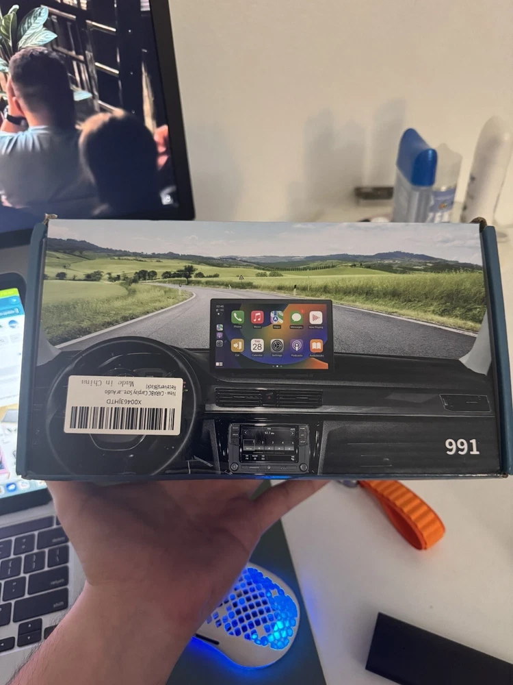 Like new, used few days. Upgrade your car with this 9" portable monitor that supports both Carplay and Android Auto. With a backup camera and front dash camera included, you'll have peace of mind while driving. The LCD screen display ensures a clear picture, and the camera connection type can be either wireless or wired for your convenience. This backup camera and monitor kit is compatible with most vehicles and has been manufactured in China with high-quality materials. Add this to your cart now and take the first step to safer driving.