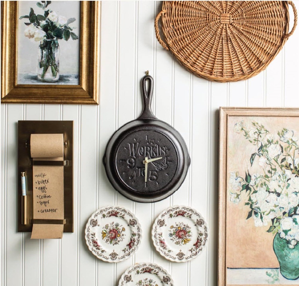 This skillet clock is a nod to Dolly Parton’s hit song “9 to 5.” Proudly display this piece that needs a big dose of Dolly fun—from kitchen to office! The collectible clock features a Lodge cast iron skillet with a special Dolly-inspired design that’s made to be passed down for generations to come. Our skillet clock has a cast iron body with aluminum clock hands that uses 1 AA battery (not included) and requires some assembly. Note: clock kit includes an extra washer (just in case). Made for Dolly Fans, the "9 to 5" skillet clock is for decorative use only, not for cooking. Color Black Display Type does not apply Style Country Special Feature Made without PFOA or PTFE Product Dimensions 9.88"W x 15.31"H Power Source Battery Powered Age Range (Description) Adult Room Type Kitchen Shape Rectangular Indoor/Outdoor Usage Indoor Material Cast Iron Theme Dolly Parton; 9 to 5 Frame Material Cast Iron Are Batteries Included No Mounting Type Tabletop Item Weight 4.17 Pounds Number of Batteries 1 AA batteries required. Watch Movement Quartz Number of Items 1 Operation Mode Electrical Dial Color Black Clock Form Multi Display Size 9 Inch
