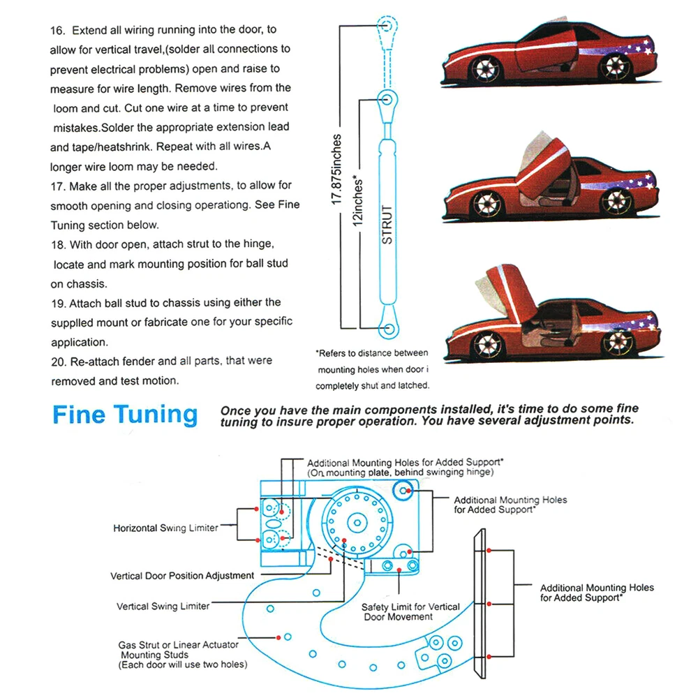 【PACKAGE CONTENT】4 pieces of 150 PSI support rods, a pair of vertical door hinge kits, and universal mounting bolts. The door can be modified with these universal lambo door kit for car. 【WORKING PRINCIPLE】By using vertical door hinges, the door can be opened even in a narrow area, thereby avoiding damage to pedestrians and the door itself 【APPLICABLE MODELS】 The vertical door uses an upward hinge to overturn the traditional outward opening method. Almost all vehicles can be converted into a vertical door. It is compatible with Chevrolet, Nissan, Mazda, Ford, Subaru, Toyota and most other cars. 【HIGH QUALITY】The lambo door kit is made of durable steel, strong and wear-resistant, can withstand more than 20,000 opening and closing times, and is used in most models, including open cars. 90 Degree Universal Door Hinge Bolt Kit Adjustable for Lambo Car Vertical Doors Description Universal Vertical Doors Kit 【PACKAGE CONTENT】 4 pieces of 150 PSI support rods, a pair of vertical door hinge kits, and universal mounting bolts. The door can be modified with these universal lambo door kit for car. 【WORKING PRINCIPLE 】By using vertical door hinges, the door can be opened even in a narrow area, thereby avoiding damage to pedestrians and the door itself 【APPLICABLE MODELS】 The vertical door uses an upward hinge to overturn the traditional outward opening method. Almost all vehicles can be converted into a vertical door. It is compatible with Chevrolet, Nissan, Mazda, Ford, Subaru, Toyota and most other cars. 【HIGH QUALITY】 The lambo door kit is made of durable steel, strong and wear-resistant, can withstand more than 20,000 opening and closing times, and is used in most models, including open cars. 【Specifications】 Main Material: Steel Main Color: Metallic silver Compatibility: Universal Fitment for Most Cars Struts: 150 PSI x 4 【Feature】 Vertical Door Kit Excellent Performance Premium Material Universal Fitment 【NOTE】 The modification process may involve drilling, welding, wire kit extension and other processes, which should be completed by professional technicians. NOTE: This product is universal, but it may require drilling, welding or cutting to install. If you are not willing to drill, weld or cut, maybe it is not suitable for your cars. Payment Delivery details Terms of sales About us Contact us Payment We accept ebay payment 。 Fees such as import duties, taxes are not included in the item price or shipping costs. These charges are the buyer's responsibility. Delivery details Shipping: 2-9 working days to: USA Terms of sales We maintain high standards of excellence and strive for hundred percent customer satisfaction. Feedback is very important to us. We hope that you contact us immediately before you give neutral or negative feedback, so that we can address your concerns. It is impossible to address issues if we do not know about them! About us Your satis faction is our ultimate goal. We work hard to earn your trust and future business. Our certified technicians have tested each item before shipping. The unit comes with 1 year limited warranty on all manufacturing defects. a) If you receive a defective item, you may return it or ask for a discount. Please contact us within 14 days after you receive the package. b) What you returned must be intact and in its original packaging as re? u. Customer is responsible for shipping costs of the returned item. c) We will cover the cost of shipping back t with the shipping rate indicated in the registration page. We will send you a new unit or refund the full payment you paid. Thank you. Contact us Business Hour Business Hour: Monday To Friday: 8:30 AM to 5:00 PM (Beijing China time) Due to time zones, our reply to your questions may not be immediately. But within above working time, we will reply your email within 24 hours. If it's non-workdays, please kindly be patient and wait till Monday. Please contact us with ebay message. Please feel free to contact us if you have any questions. Monday To Friday: 8:30 AM to 5:00 PM (Beijing China time) Due to time zones, our reply to your questions may not be immediately. But within above working time, we will reply your email within 24 hours. If it's non-workdays, please kindly be patient and wait till Monday. Please contact us with ebay message. Please feel free to contact us if you have any questions. PlatformSKU AC-LFCYT-2774 Brand Unbranded shipping notice Can not ship to Puerto Rico,Alaska/Hawaii Manufacturer Part Number Does Not Apply Warranty 3 Year Color Silver Type Door Bolt Kit On Dec 16, 2024 at 21:51:04 PST, seller added the following information: