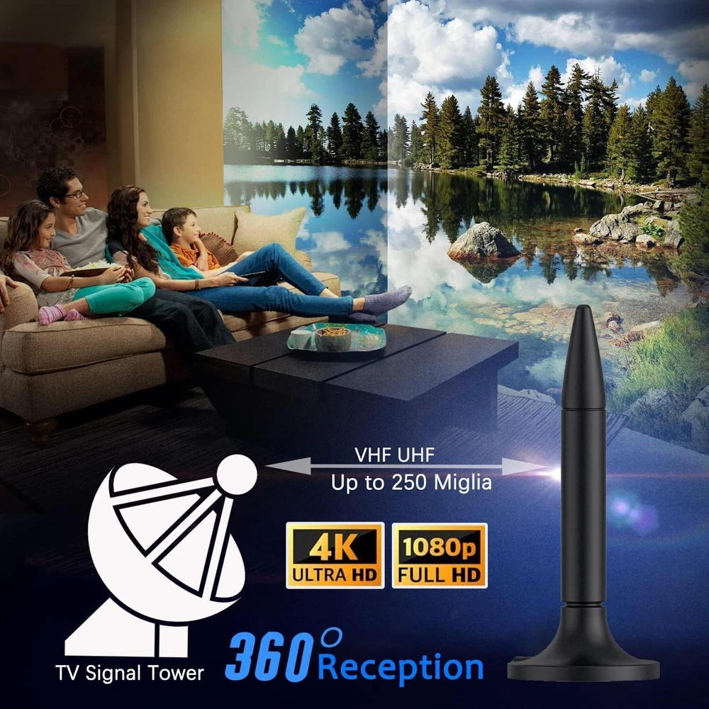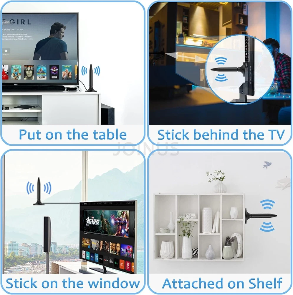 900+ Miles TV Antenna, 2025 Digital TV Antenna for Smart TV and All TV, Strong Magnetic Base for Easy Installation, 360° & Long Range Reception for HDTV Channels-Support All TV's - 10ft Long Cable 【Enjoy Free HDTV Channels】Never Pay Monthly Bill - With this digital TV antenna for smart TV, you can watch crystal clear HD channels without cable service and enjoy major networks like CBS, ABC, FOX, NBC, CW, PBS, ION, UNIVISION, TELEMUNDO, UNIMAS, AZTECA and so much more! Stay on top of live local programming without spending extra money or losing any of your favourite local TV channels. 【Industry Leading Technology】This digital TV antenna adopts latest eco-friendly flame retardant double PC soft material(not other PVC material) bring moisture and lightning protection to our smart 4K HDTV antennas. The unique plastic shell, the whole network and all the accessories are all pure copper to ensure the loose contact. Now you can enjoy your favourite TV shows without worrying about thunderstorms. 【360° Reception & Magnetic Base】The indoor HDTV antenna 360° reception, whether the antenna is installed on the TV stand or on the table, you can receive the crystal clear picture. MAGNETIC BASE FOR QUICK AND EASY INSTALLATION- Magnetic base allows you to install your antennas on most metal surfaces and get your TV signals in minutes. 【Compact and Small Design】Don't be put off by its size! It's tiny but mighty; it doesn't take up much space, perfect to blend in with its surroundings and easy to hide, NOTE: Always remember to re-scan for channels after moving the antenna.