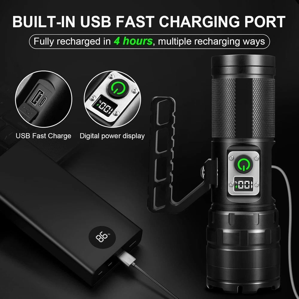 900000 Lumens Rechargeable LED Flashlight - Heavy-Duty Water-Resistant Light ‹ › ‹ › ‹ › ‹ › ‹ › ‹ › ‹ › ‹ › 900000 Lumens Rechargeable LED Flashlight Heavy-Duty Water-Resistant Light Features: Unparalleled Brightness: Emits an astounding 900,000 lumens, 35 times brighter than regular LED flashlights, illuminating spaces up to 200 square feet or focusing on objects 3280 feet away. 11 Adjustable Light Modes: Tailor your lighting with High, Medium, Low, Strobe, and Slow flash options. The COB Rear light offers Warm and White light, plus Red and Red warning lights for safety in crisis. Long-lasting Power: Equipped with a 2750mAh high-capacity rechargeable battery, providing up to 12 hours of continuous illumination in low mode. Quick Charging: Features a built-in type-C fast charging port, with a charge time of just 4-5 hours. The digital screen keeps you informed about the battery's status. Virtually Indestructible: Constructed from rugged anodized aviation aluminum, this flashlight can withstand extreme conditions, including sub-zero temperatures and heavy impacts. IPX6 Waterproof Design: Built for endurance in wet conditions; the hidden charging port safeguards against rain and snow, making it perfect for any adventure. Benefits: Perfect for outdoor activities: hiking, camping, fishing, and biking. Reliable home emergency tool and a must-have for roadside repairs or nighttime walks. Compact, lightweight design for effortless portability. Ideal gift for outdoor enthusiasts and anyone who values safety and preparedness. Comprehensive after-sales support from a dedicated team to address any concerns. Why choose our 900000 Lumens Rechargeable LED Flashlight? Illuminate your world with unparalleled brightness and reliability. Whether you're navigating through a dark forest, fixing your vehicle at night, or simply seeking peace of mind, this flashlight offers powerful, adaptable lighting solutions tailored to your needs. With its exceptional features and sturdy construction, this flashlight stands out as a crucial companion in any situation. Don’t settle for ordinary; elevate your illumination experience with this advanced LED flashlight. Order yours today and ensure you’re prepared for any adventure or emergency! Shipping Free & Fast Shipping - We offer free shipping to most of the USA with a normal delivery time of 3-7 days. However, due to the current situation, additional delivery time (up to 3 weeks) may be required for some items. Alternative Carriers - We may use alternative carriers (e.g. USPS, FedEx, UPS, etc.) to ensure your package arrives safely and on time. Due to the use of multiple carriers, we are unable to provide a tracking number automatically. Handling Time - Orders are processed and shipped within 1-2 business days of receiving cleared payment. Shipping Restrictions - Shipping to Alaska, Hawaii, Puerto Rico, Guam, and other US territories may incur shipping charges or delivery restrictions. Please contact us before ordering, or your order can be refunded/cancelled. State Restrictions - There may be restrictions based on your state of purchase. For example, certain items may not be shipped to California due to state regulations. Contact for Tracking Updates - If you require tracking updates or have any concerns about the delivery of your order, please feel free to contact us, and we will be happy to assist you. Return 30-Day Hassle-Free Returns - We want you to be completely satisfied with your purchase. If you are not, you can return the item within 30 days of receiving it for a full refund or exchange. Easy Return Process - To start a return, simply contact us and we will provide you with a prepaid return shipping label and detailed instructions. Restocking Fee - There are no restocking fees for returns. However, the buyer is responsible for return shipping costs if the return is not due to a seller's error. Refund Processing Time - Refunds will be processed within 5 business days of receiving the returned item in its original condition. Payment We accept all major credit cards, PayPal, and Apple Pay for your convenience. Your payment information is secure and encrypted to ensure a safe and seamless transaction. Please complete your payment within 3 days of purchase to avoid any delays in shipping. Feedback Your feedback is extremely important to us. We strive to provide the best products and customer service possible. If you are satisfied with your purchase, please take a moment to leave us a positive review. If you have any concerns or issues with your order, please contact us before leaving negative feedback. We are committed to resolving any problems and ensuring your satisfaction. Contact Us If you have any questions or concerns, please feel free to reach out to our customer support team. You can contact us through the eBay messaging system. We are available Monday to Friday, 9:00 am to 5:00 pm EST, and we will do our best to respond to your inquiry within 24 hours. Thank you for supporting our small family business! UPC: Not Set Voltage: Rechargeable LED Flashlight Item Height: Rechargeable LED Flashlight Item Length: Rechargeable LED Flashlight Item Weight: 1.87 lb Item Width: Not Set Model: Not Set Lumens: 900000 Number of LEDs: Not Set Unit Quantity: 1 Features: Rechargeable,Waterproof,Adjustable Light Modes,Portable,Long Range,Weatherproof Material: Aluminum Brand: Unbranded Type: Flashlight Lighting Technology: LED Power Source: Battery Operating Range: 3280 feet MPN: Not Set Battery Technology: NiMH Number of Batteries: 1 Color: Black Country/Region of Manufacture: Not Set IP Rating: IPX6 Operating Time: More Than 10 Hours Number of Lights: 1-3 Unit Type: lb Personalize: Not Set