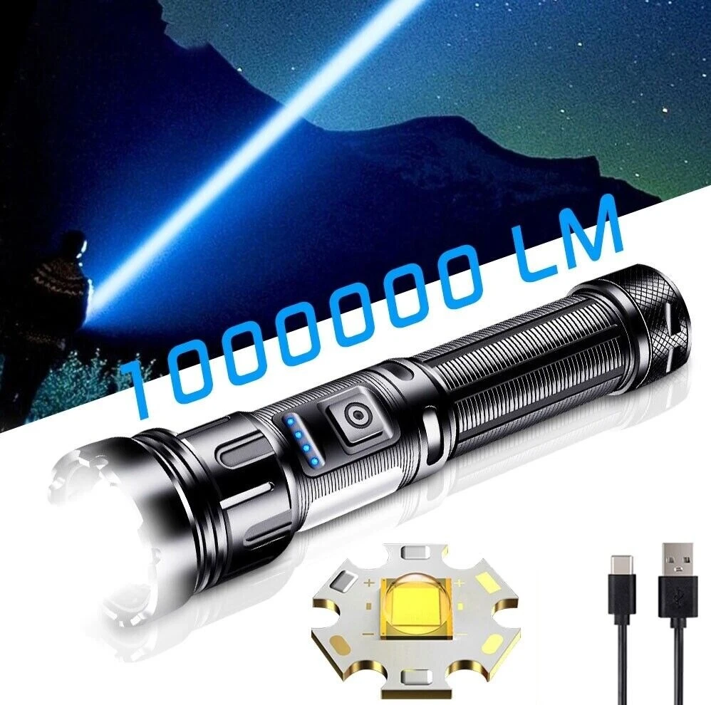 9000000 Lumens Super Bright LED Flashlight Tactical Rechargeable LED Work Lights