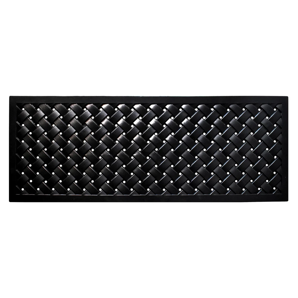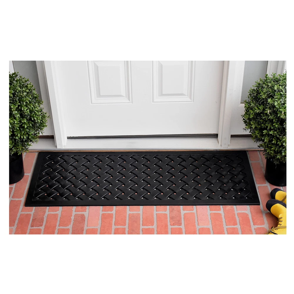 Made of 100% rubber, this heavy-duty weave patterned doormat stands up to traffic and provides resilient coverage at your entry. Extremely durable, this mat is self-draining and weather tolerant. Hose clean. Over-sized to provide more coverage Durable, 100% rubber that won't crack or buckle Resists fading All-season, weather tolerant Dimensions: 18" x 48" x 0.60"