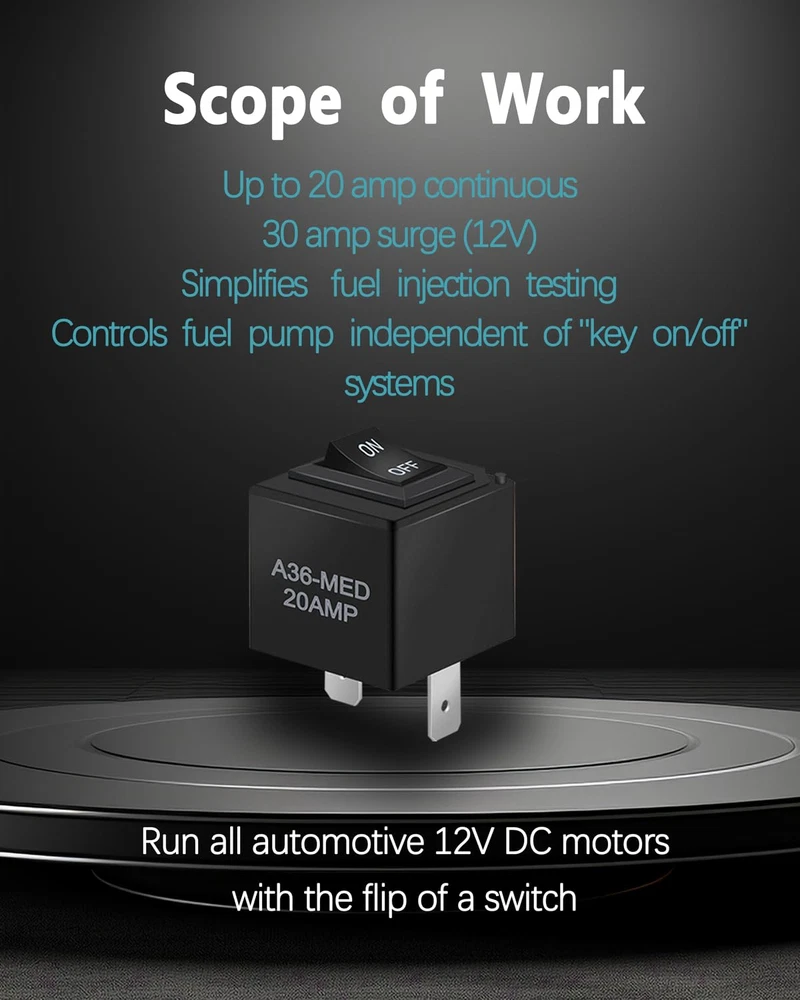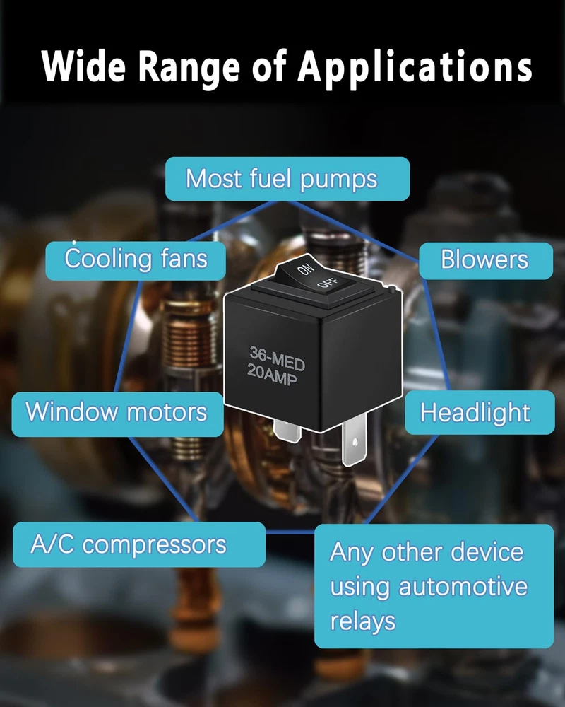 9038 Relay Bypass Switch Relay Tester Relay Bypass Switch Kit 6-Pack Black Compatibility: 9038 replaces 9036 9037, suitable for most domestic, Japanese, Korean and German fuel pumps, window motors, headlight switches and other devices using automotive relays Plug and Play: can be installed vertically or horizontally, just plug in the fuel pump relay position to directly control the fuel pump circuit, very convenient, saving a lot of time and money New Upgrade: The shell is made of high-quality materials, dustproof and waterproof; the silver contacts have high conductivity to ensure continuous and stable operation of the power supply Operating Range: Up to 20 amps continuous current, 30 amps surge current (12V), suitable for most car models on the market, please see the picture for specific models. Products Include: 6* relay switches. Please check the OEM part number before purchasing and make sure your part number matches this part number to avoid purchasing the wrong product Product Description Wide Range of Applications Up to 20 amp continuous, 30 amp surge (12V) Used in most fuel pumps, cooling fans, blowers, window motors, headlight switches, A/C compressors and any other device using automotive relays. Current Rating 30 Amps Mounting Type Plug In Mount Product Dimensions 4.72 x 2.75 x 3.54 inches; 3.53 ounces Country of Origin China Connector Type Plug-In Contact Type Normally Open Contact Material No Complimentary Shipping and Easy Returns Need to return something? Enjoy our 30-day hassle-free return policy! Take advantage of free shipping across all 48 contiguous states! Your order will be dispatched within 1-2 business days once payment is confirmed. Your Opinion Matters! Your happiness is our main goal! We welcome your feedback! If you encounter any problems, reach out to us right away, and we’ll be here to help. Explore the Extraordinary! Our collection showcases fascinating products that are sure to capture your attention. What surprises await you? Delve in and discover unique items that enrich your daily life. Don't miss the amazing things we have in store for you!