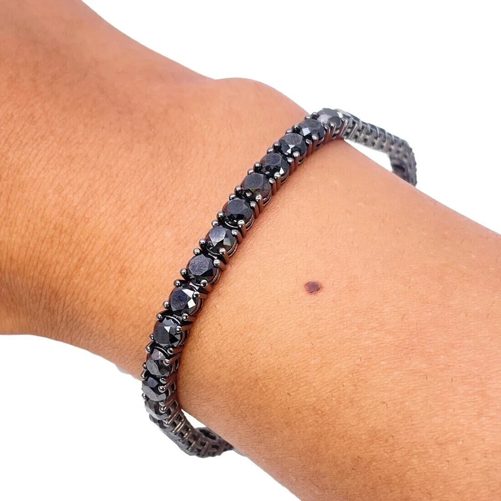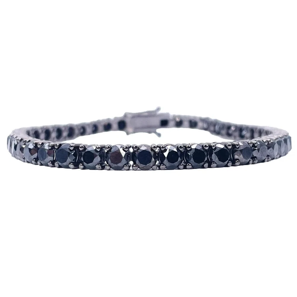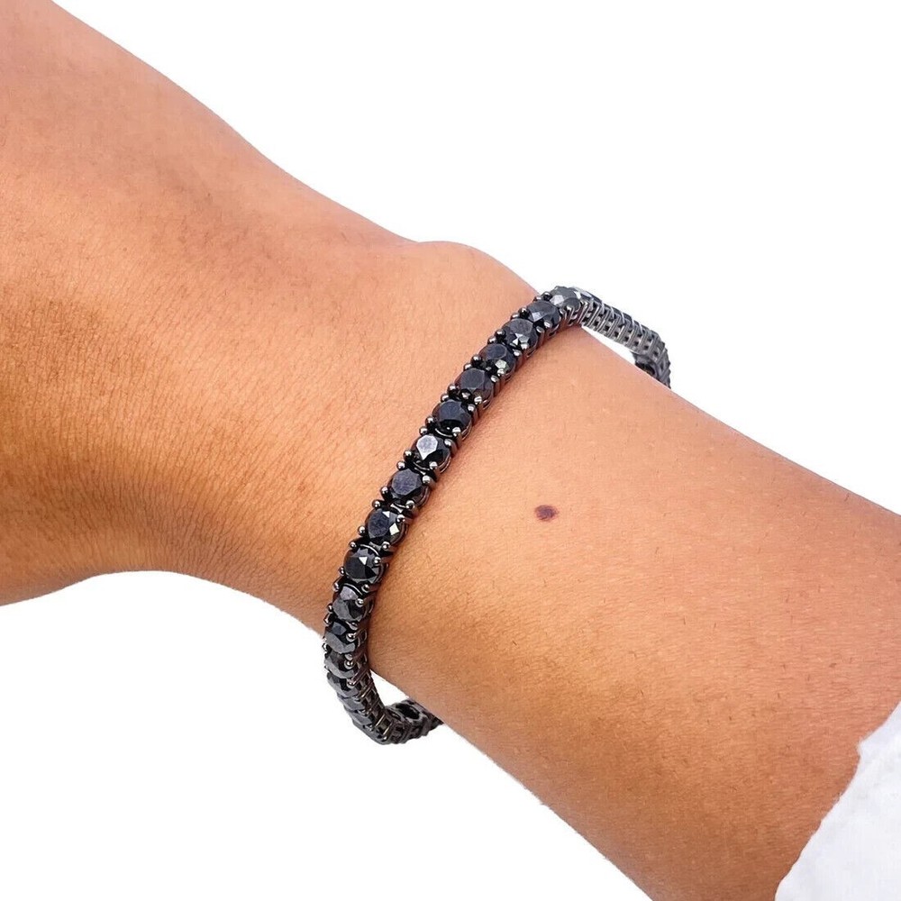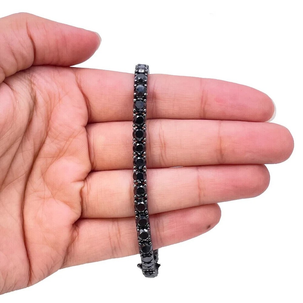 Theme: Art, Beauty, Family & Friends, Fashion & Costumes, Love Country of Origin: Unknown Signed: No Main Stone Shape: Round Country/Region of Manufacture: Unknown Main Stone Color: Black Brand: Samarth Jewels Sizable: Yes Charm Type: Traditional Colored Diamond Intensity: Fancy Gemstone Clarity Grade: Eye Clean Color: Black Main Stone Creation: Lab-Created Main Stone Treatment: Not Enhanced Number of Diamonds: As Per Image Chain Type: Cable Style: Tennis Cut Grade: Excellent Occasion: Anniversary, Birthday, Christmas, Engagement, Graduation, Mother's Day, Valentine's Day, Wedding Closure: Box Secondary Stone: Lab Created Moissanite Metal: Sterling Silver Shape: As Per Image Type: Bracelet Material: Stone Base Metal: Silver Seller Warranty: 30 Days Diamond Color Grade: D Metal Purity: 925 Certification: No Features: Adjustable, Engraved, Nickel-Free Diamond Clarity Grade: Very, Very Slightly Included (VVS1) Number of Gemstones: As Per Image Customized: Yes Wholesale: Yes Item Length: 7 in Vintage: No Personalize: No Collection: As Per Image Main Stone: Onyx Setting Style: Cluster Total Carat Weight: 9.0 Ct Handmade: Yes Antique: No