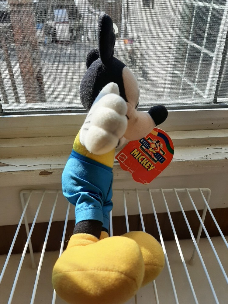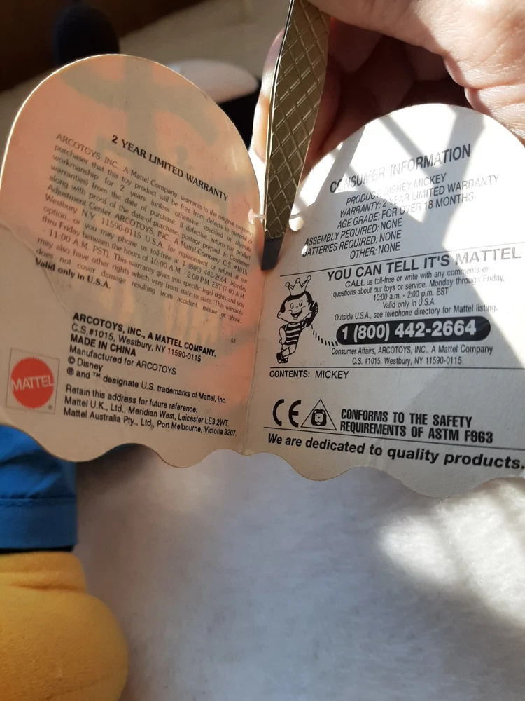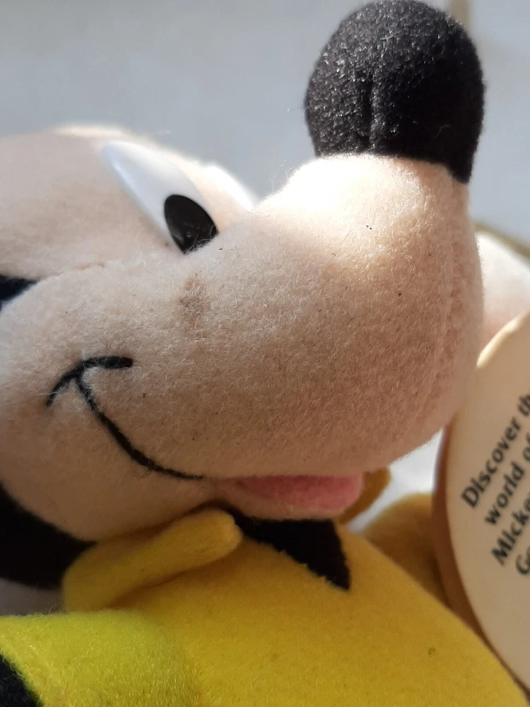 Mattel Vintage 90s Mickey's Stuff For Kids Plush Toy Tags Disney Mickey Mouse with tag In good pre-owned condition may show signs of wear from use/handling/storage/display. Please view all pics for condition/details/flaws/issues. SOLD AS IS There is damage to tag and some loose strings. There is/maybe marks/spots/dirt/debris please see photos 1-24, there is/maybe paint loss/sticker loss please see photos 1-24, there is lite discoloration please see photos 1-24, there are surface scratches to item please see photos 1-24, please see all photos for condition/issues/details.