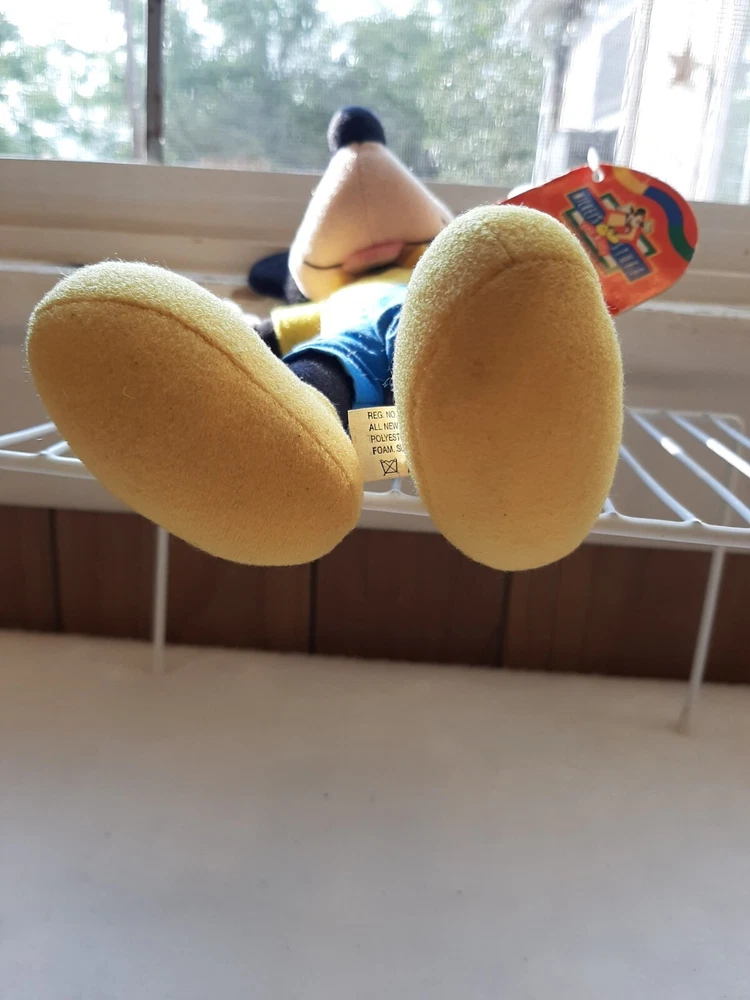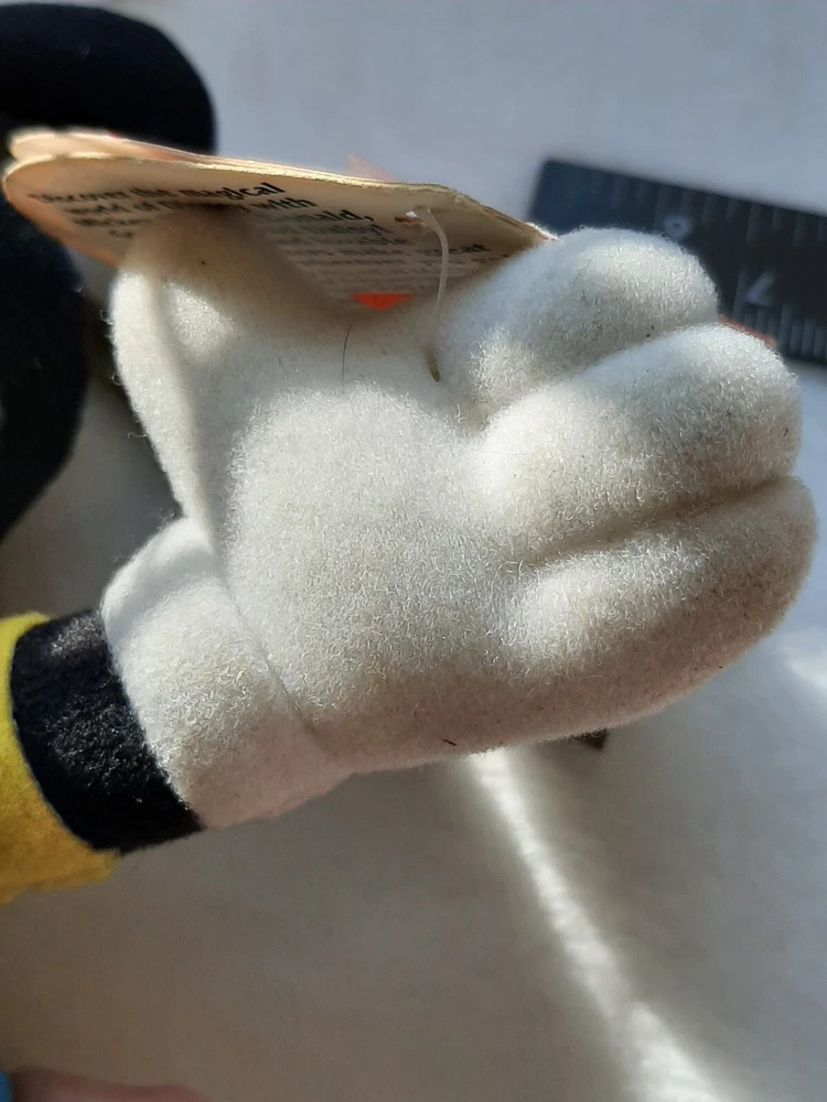 This adorable 90s Mickey plush is a nostalgic gem with vintage charm! While it shows some wear like loose threads and light discoloration, it’s still super soft and full of character. Perfect for collectors or Disney fans who love a well-loved piece with history. The tag adds authenticity—just check the photos for details. A sweet find for any Mickey enthusiast!