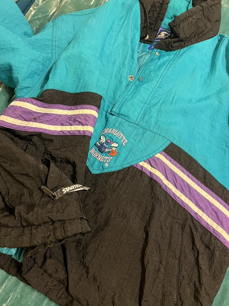 Vintage Charlotte Hornets Starter Purple Puffy Jacket Size L. Measurements in photos. 90s retro