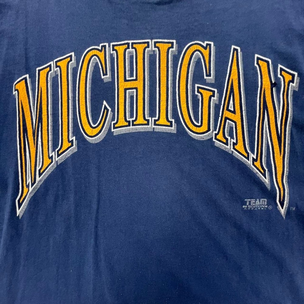 Vintage 90s university of Michigan Wolverines t shirt tee blue yellow NCAA college sportswear streetwear boho retro Size: XL Pit to pit: 25 Length: 33