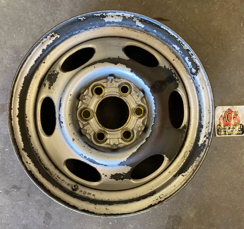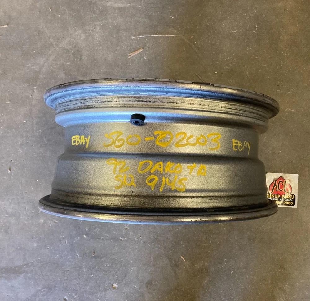 PLEASE CONTACT US AT 5208899000 IF YOU HAVE ANY QUESTIONS This listing is for the following item: This is a used OEM 15x6" Steel Wheel From a 1992 Dodge Dakota Pickup. It has the 6-lug on 4.5" Bolt Circle. It is in good used condition for the age. The factory paint is flaking off- will need to be repainted to make it look nice. There is some surface rust on the face. Please see photos. I guarantee it to be straight and usable. Hollander number: 560-02003 It will fit: Interchange Applications for 560-2003 Wheel 1) Dodge Dakota 1991-1996 (15x6), steel, 6 slot [2003] 2) Dodge Dakota 1997-2000 15x6, 6 slot [2003] Interchange Notes for 560-2003 CH $228 15x6, 6 lug, 4-1/2" It is the buyer's responsibility to determine if this part will fit his/her vehicle Questions? Not what you're looking for? Please contact us if you need something else. _____________________________________________________ INTERNATIONAL CUSTOMERS: International shipping is NOT available at this time. _____________________________________________________ All sales will be charged sales tax. We accept Visa / MasterCard. We recycle wrecked Pickup Trucks, 4x4's, and SUV's. From Engines and transmissions to wiring harnesses and door parts. Steering and suspension parts to lighting assemblies and dash components. Emission controls and body parts to bumpers and seats. We stock parts that other yards throw away. Our address is: Ace Pickup Parts 9110 S. Eisenhower rd. Tucson Az, 85756 Call us at: 5208899000 Hours of Operation: 8:00 AM till 5:00 PM Monday through Friday Closed Weekends
