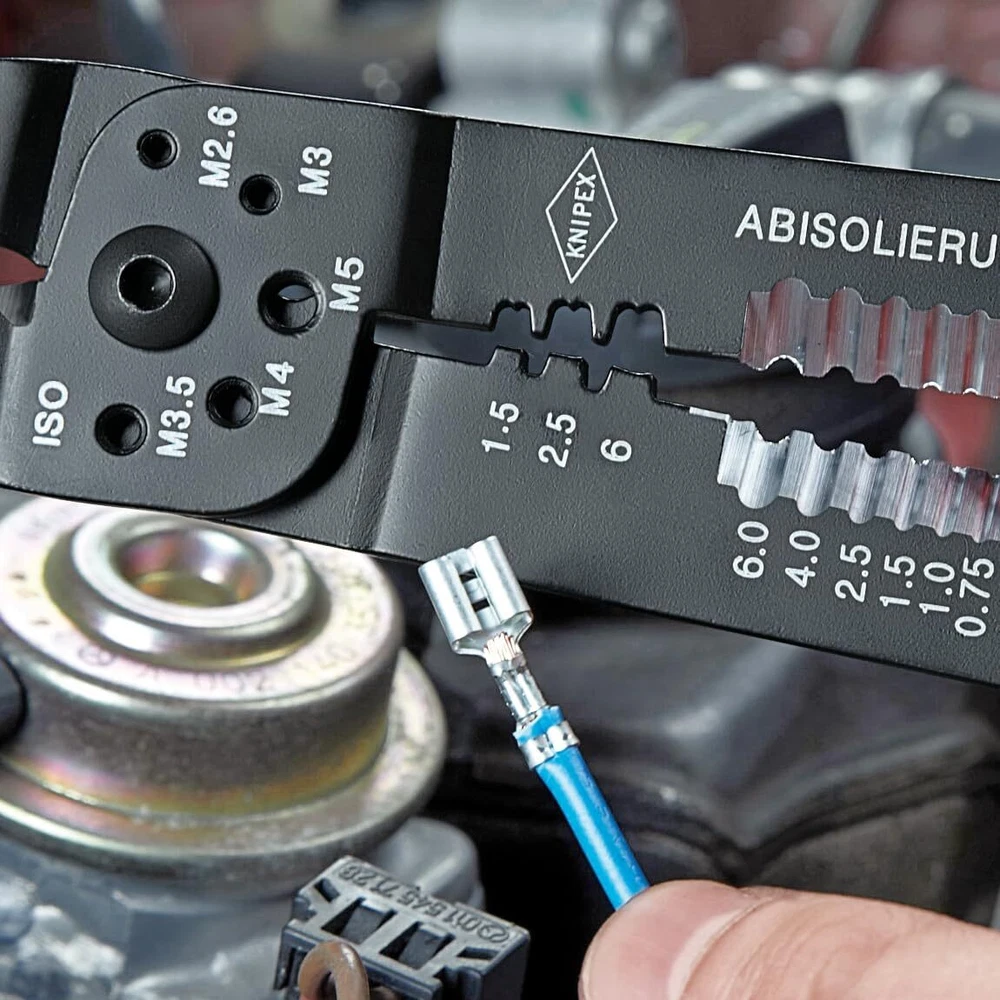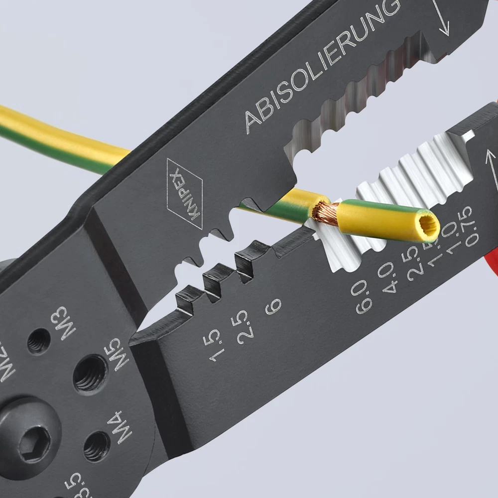 Wire Stripper, Insulated Yes, Overall Length 9-1/4 In., Capacity 18 to 10 AWG, Cable Type Solid and Stranded, Standard Tool (Accessory Needed for Tethering), Functions Strip/Crimp, Adjustable Manual, Handle Type Cushion Grip, Features Threaded Holes for Cutting Copper and Brass Screws Threaded M2.6, M3, M3.5, M4 and M5, Crimper With 3-Positions for Insulated and Non Insulated Mpn: 97 22 240 Country of manufacture: Taiwan Manufacturer: Package Dimensions: 18" L x 18" W x 21" H