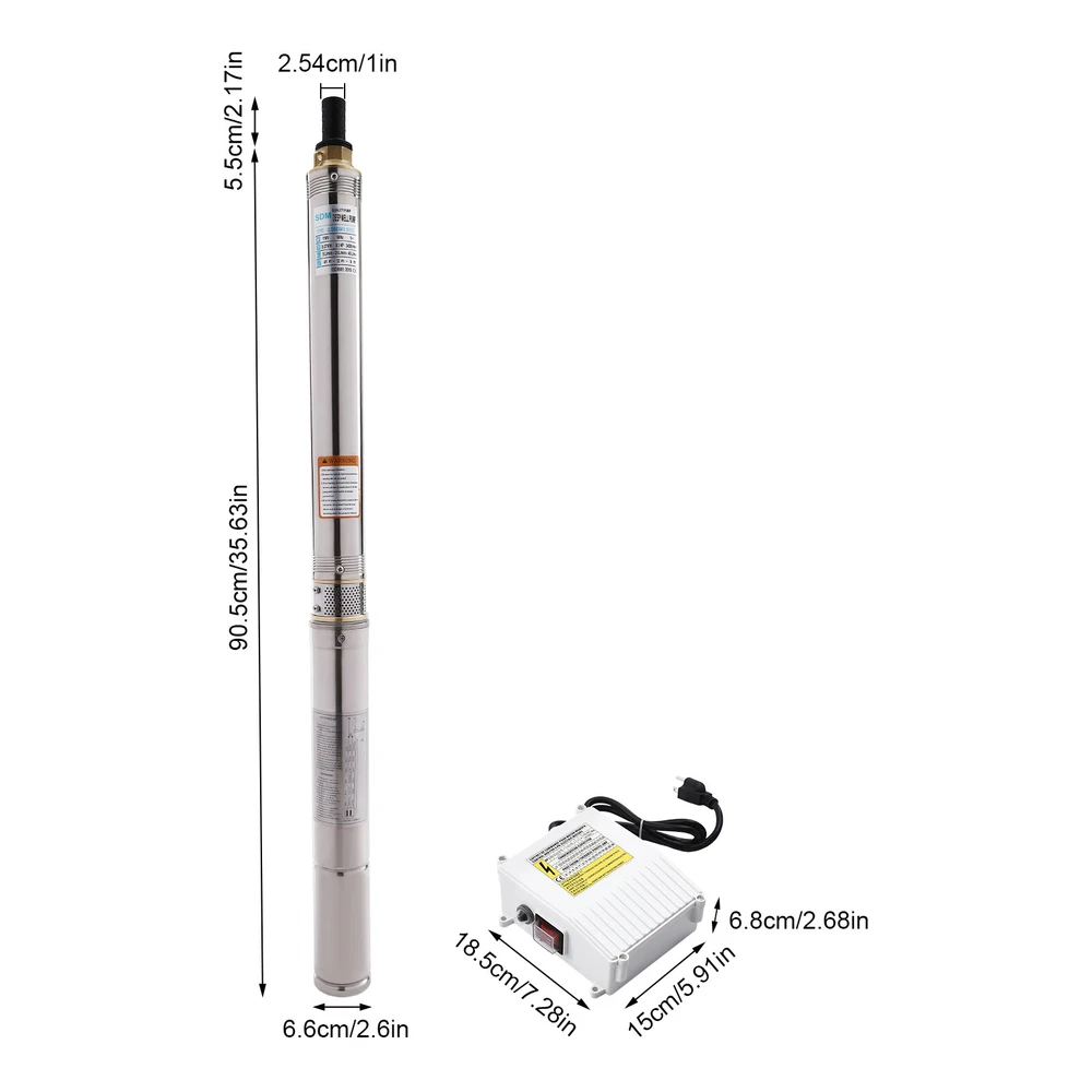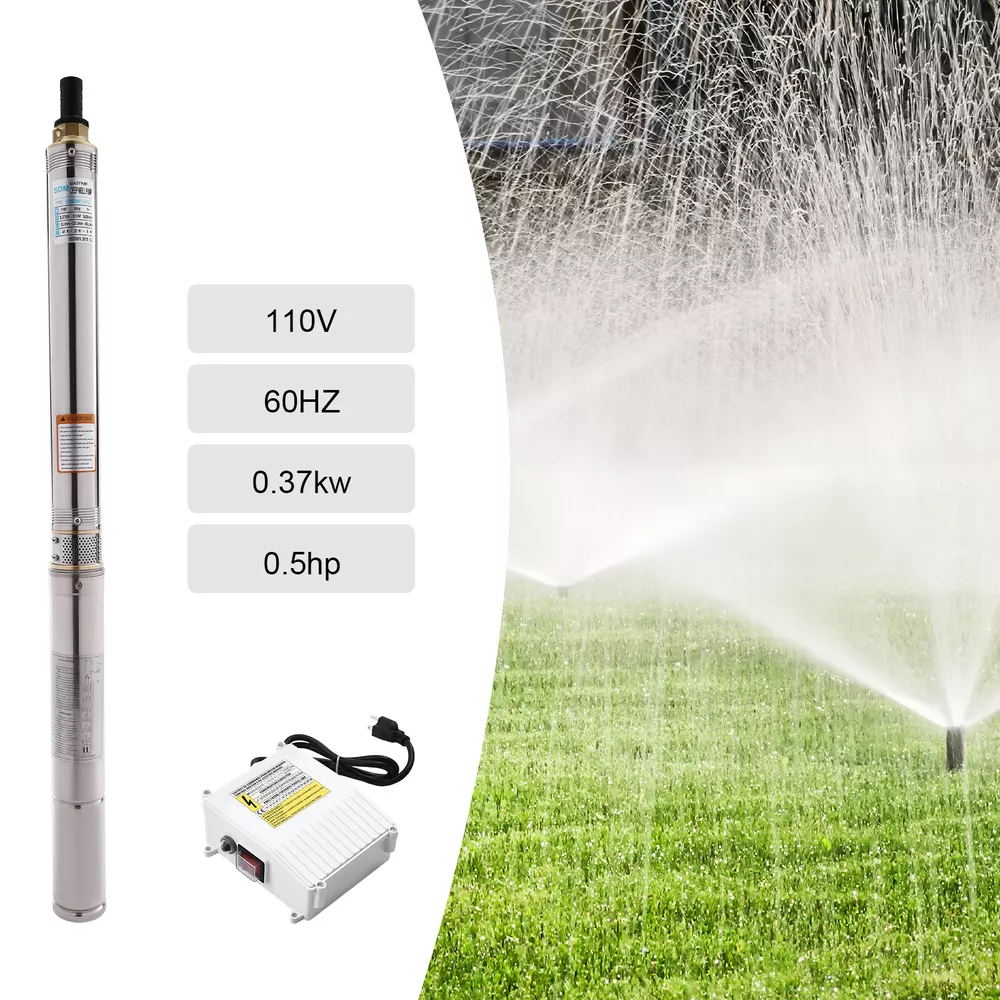 Type: 2.5SDM1.5/17 Power: 0.55KW(0.75HP) Delivery Lift: 13m/42.65ft, 43m/141ft, 60m/196.85ft Flow Rate: 5L/1.32gal/min, 25L/6.6gal/min, 45L/11.89gal/min Gross Weight: 12.5kg/27.56lbs Package Size: 96.5*26.5*11cm/37.99*10.43*4.33inch Product Size(D*H): 6.6*107.2cm/2.6*42.2in Type: 2.5SDM1.5/8 Power: 0.25KW(0.33HP) Delivery Lift: 6m/19.69ft, 21m/68.9ft, 28m/91.86ft Gross Weight: 9kg/19.84lbs Package Size: 105*11*20cm/41.34*4.33*7.87inch Product Size(D*H): 6.6*77.3cm/2.6*30.43in Type: 2.5SDM1.5/12 Power: 0.37KW(0.5HP) Delivery Lift: 9m/29.53ft, 32m/105ft, 41m/134.5ft Gross Weight: 10.2kg/22.49lbs Package Size: 125*20*11cm/49.21*4.33*7.87inch Product Size(D*H): 6.6*90.5cm/2.6*35.63in Package Included 1* Submersible Pump 1* Water Outlet 1* Control Box 1* English Manual 91.86/134.5/196.85 FT Deep Well Submersible Pump 1" Stainless Steel Water Pump Description If you're looking for an efficient and simple irrigation solution, take a look at our submersible pump, a jewel in the world of irrigation technology for its performance and ease of operation. This submersible pump's unique design of deep water and silent operation quietly provide your farmland with a constant supply of living water, making every inch of soil come alive, which is undoubtedly the ideal choice for scientific irrigation and improved agricultural efficiency. Key Features Build to Last : It is made of high-quality stainless steel, copper, plastic, and rubber, and adopts a polishing process, making it solid, and not prone to rust and corrosion, so it can remain beautiful and practical for a long time. High Efficiency: The 0.55/0.25/0.37KW submersible motor, 3420rpm speed, maximum 11.89gal flow rate with 17 impellers as well as a diffuser and intake screen make your pumping and watering work faster and easier. Large Delivery Lift: The maximum lift of the pump is 196.85/91.86/134.5ft, which allows you to irrigate farmland, fish ponds, and orchards for a long distance, saving the time and cost of manual transportation. Easy to Clean: Thanks to its smooth surface and simple structure, and it is used to work in water, so it is very easy to clean. Space-saving: Vertical construction and compact dimensions allow it to be used or stored in the trunk of a car without taking up too much space. Simple Installation: Simple construction and a detailed English manual make it easy to put together and get up and running quickly. Protective Package: Our product is packaged with a sponge to maximize protection from damage during shipping. Customer Service: We aim to provide quality products and services. If you have any problems, please feel free to contact us. We will reply and solve the problem for you as soon as possible. Details Standard Water Outlet: The pump adopts a 1-inch large diameter water outlet, which can be matched with different types of water pipes and is very practical. Long Cable: The 65.62ft long cable increases safety and convenience for you. Application This product is suitable for extracting groundwater from deep wells, and can also be used in water-lifting projects of rivers, reservoirs, canals, and so on. It can be used for farmland irrigation, and water for humans in mountainous areas, villages, homes, farms, campervans, cities, factories, and railways. Specifications Material: Stainless Steel, Copper, Plastic, Rubber Color: Silver and Blue Process: Polishing Assembly Required: Yes Power Source: Corded Electric Plug Type: US Standard Voltage: 110V, 60Hz Speed: 3420rpm Number of Impellers: 17 Outlet Diameter : 2.54cm/1in Cable Length: 20m/65.62ft Control Box Size: 18.5*15*6.8cm/7.28*5.91*2.68in Water Outlet Size(D*H): 2.54*5.5cm/1*2.17in Type: 2.5SDM1.5/17 Power: 0.55KW(0.75HP) Delivery Lift: 13m/42.65ft, 43m/141ft, 60m/ 196.85ft Flow Rate: 5L/1.32gal/min, 25L/6.6gal/min, 45L/11.89gal/min Gross Weight: 12.5kg /27.56lbs Package Size: 96.5*26.5*11cm/37.99*10.43*4.33inch Product Size(D*H): 6.6*107.2cm/2.6*42.2in Type: 2.5SDM1.5/8 Power: 0.25KW(0.33HP) Delivery Lift: 6m/19.69ft, 21m/68.9ft, 28m/ 91.86ft Gross Weight: 9kg /19.84lbs Package Size: 105*11*20cm/41.34*4.33*7.87inch Product Size(D*H): 6.6*77.3cm/2.6*30.43in Type: 2.5SDM1.5/12 Power: 0.37KW(0.5HP) Delivery Lift: 9m/29.53ft, 32m/105ft, 41m/ 134.5ft Gross Weight: 10.2kg /22.49lbs Package Size: 125*20*11cm/49.21*4.33*7.87inch Product Size(D*H): 6.6*90.5cm/2.6*35.63in Package Included 1* Submersible Pump 1* Water Outlet 1* Control Box 1* English Manual Notes Please check that the voltage and frequency correspond to local standards before ordering. Please do not use it without water. Please note that the pump needs to be installed vertically. Please note that the pumping speed is related to the depth at which the water pump enters the water, and the deeper the depth, the lower the speed. Please note that this product is only suitable for pumping clear water, not oil, chemical raw materials, and other liquids. Please read the operating manual and label completely before use, and pay particular attention to the safety instructions included. Please allow the slight color difference caused by the shooting light and 1-3cm error due to manual measurement, and make sure you do not mind before ordering. Payment Delivery details Terms of sales About us Contact us Payment We accept ebay payment 。 Fees such as import duties, taxes are not included in the item price or shipping costs. These charges are the buyer's responsibility. Delivery details Shipping: 2-9 working days to: USA Terms of sales We maintain high standards of excellence and strive for hundred percent customer satisfaction. Feedback is very important to us. We hope that you contact us immediately before you give neutral or negative feedback, so that we can address your concerns. It is impossible to address issues if we do not know about them! About us Your satis faction is our ultimate goal. We work hard to earn your trust and future business. Our certified technicians have tested each item before shipping. The unit 