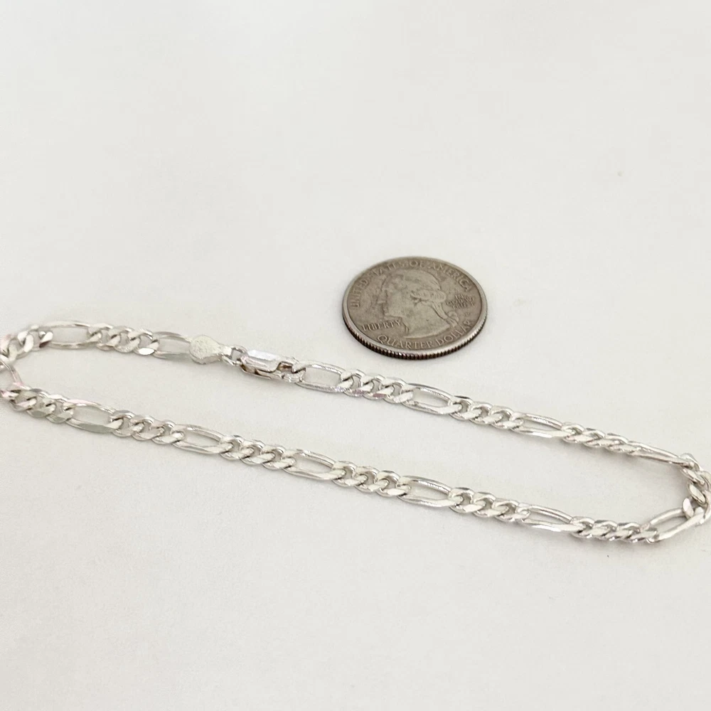 Lovely 925 Italian Sterling Silver 4.5MM Figaro Chain Link Anklet Length: 9" Width: 4.5mm Weight: 8.2 grams Signed: 925 Italy Very good condition. - Fast shipping, I ship the same or next business day! I also combine shipping. - Thank you so much for shopping with me and please check out my other jewelry listings, I post new pieces daily!