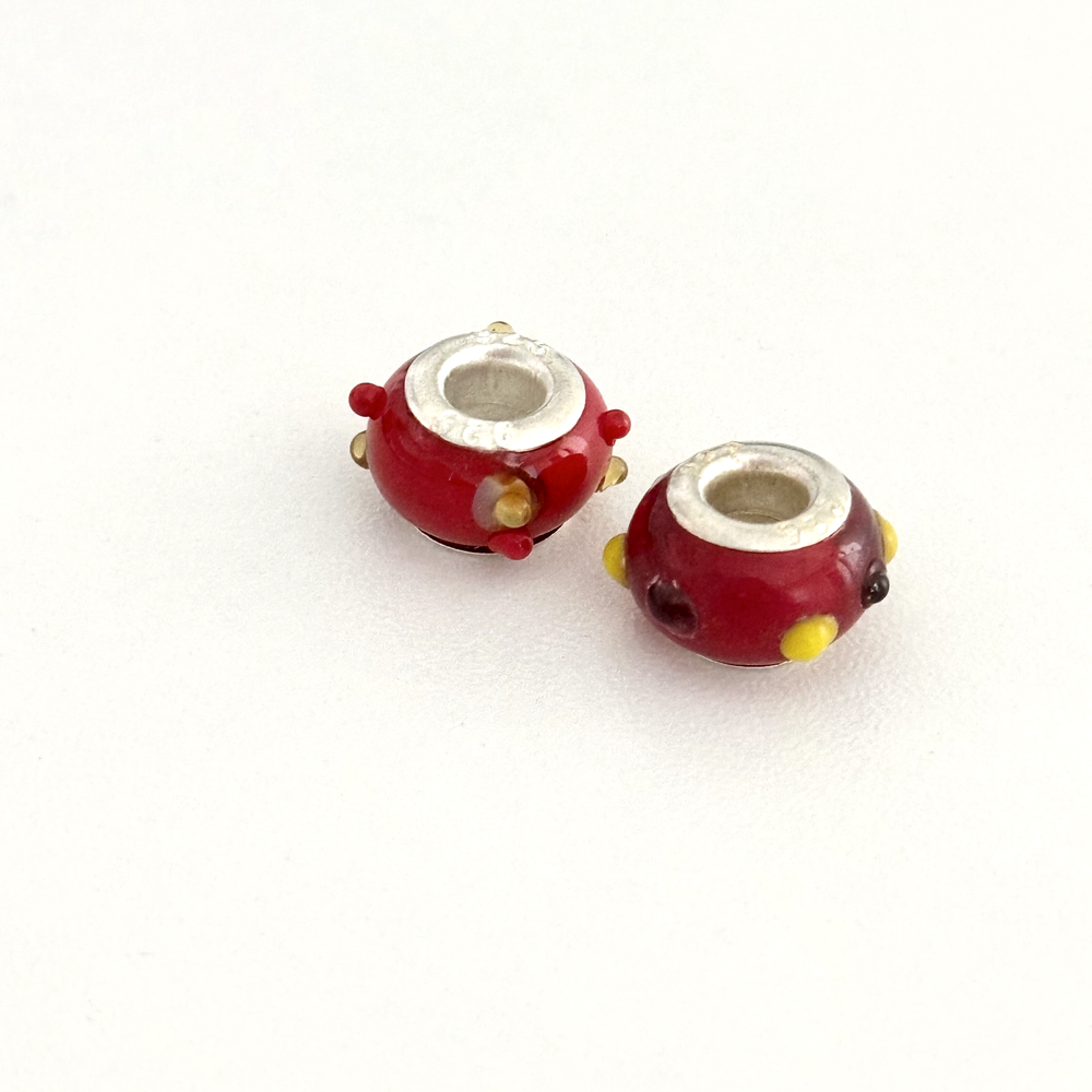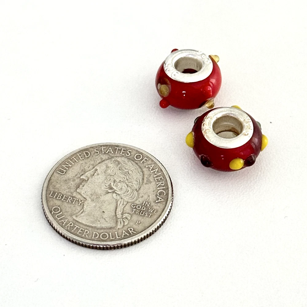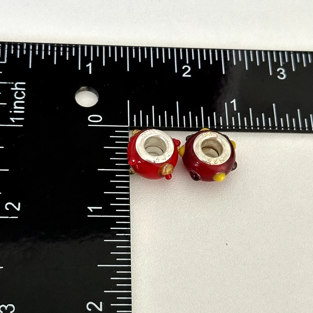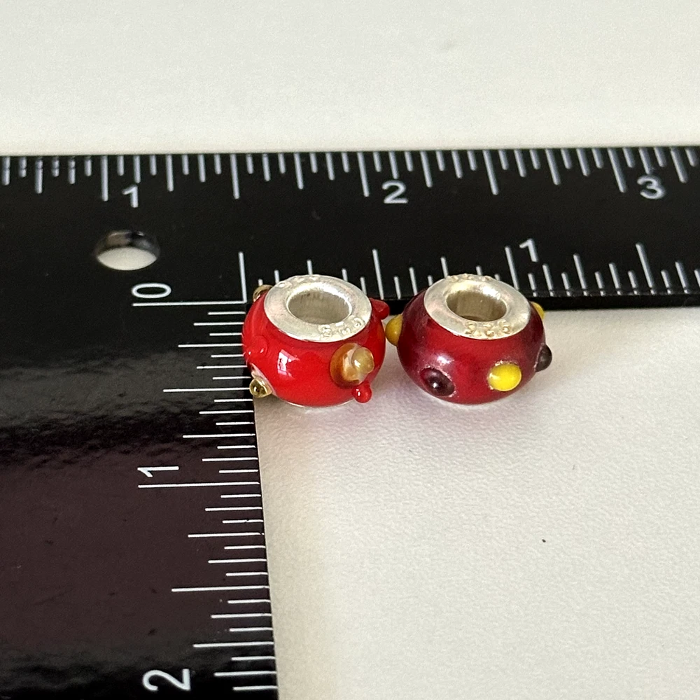 925 Sterling Silver Cherry Red Yellow Spots Murano Glass European Charm Lot Of 2 Signed: 925 Very good condition. Compatible with Pandora bracelets, Chamila, Trollbeads, etc. - Fast shipping, I ship the same or next business day! I also combine shipping. - Thank you so much for shopping with me and please check out my other jewelry listings, I post new pieces daily!