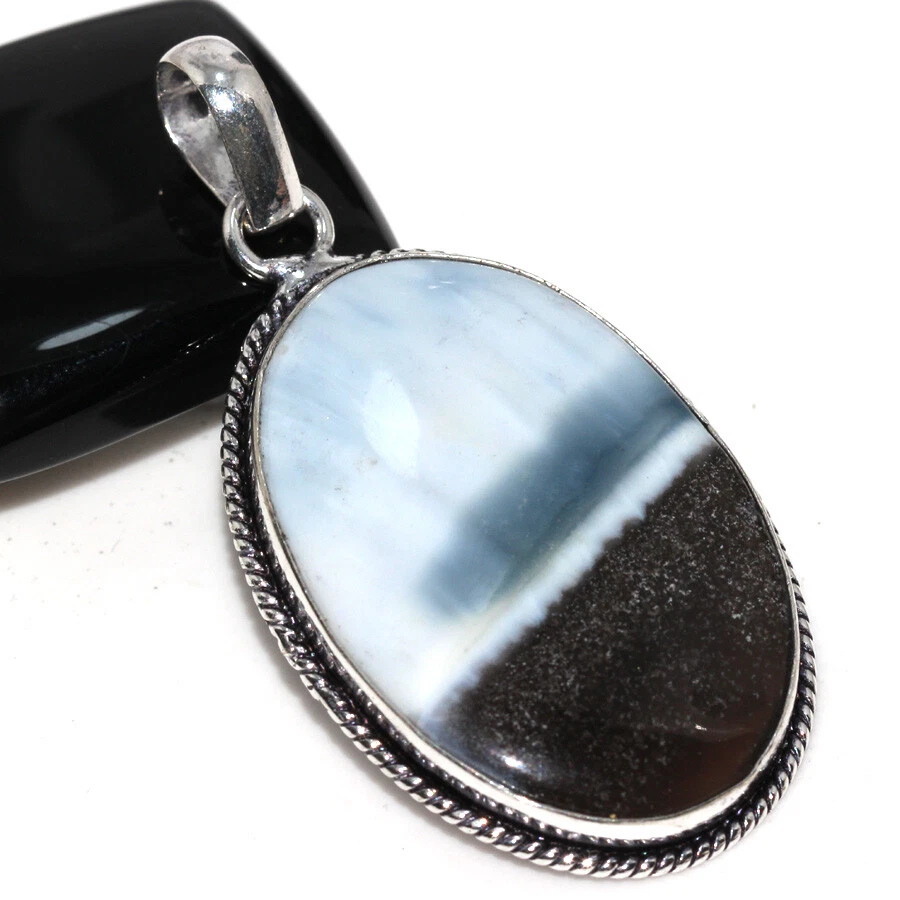 925 Silver Plated Owhyee Blue Opal Ethnic Pendant Jewelry Size 2.1" JW