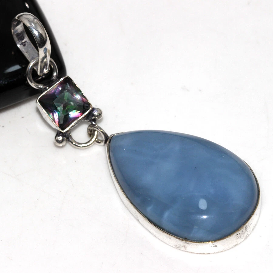 925 Silver Plated Owhyee Blue Opal Mystic Topaz Long Pendant Size 2.5" JW