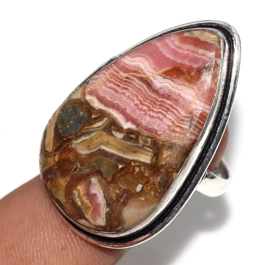 925 Silver Plated Pyrite In Rhodochrosite Ethnic Ring Jewelry Size US 9 JW