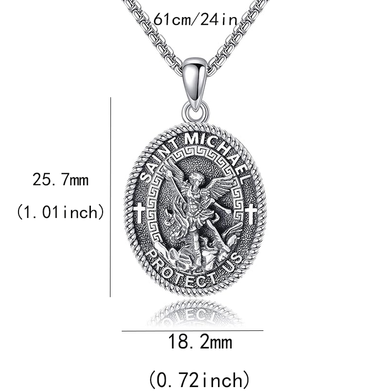 Product Description: Saint Michael Necklace Medal-St Michael Coin Pendant. Saint Michael Protect Us: Spiritual gift of being blessed for lover family friend and yourself as a daily necklace. Protect Religious Jewelry gift for Men or Women Daily Wear Tips: -It is recommended to remove all jewelry before showering, exercising, soaking in hot springs, sleeping, or coming into contact with seawater. This helps prevent squeezing, impact, or sweat and dirt from accumulating in crevices, which may cause metal oxidation, loosening, deformation, or other damage. -Avoid excessive pulling, swinging, pressing, or rubbing jewelry against sharp objects. Although metal has some flexibility, repeated bending can lead to metal fatigue, resulting in wear, deformation, or breakage. About us: -Have any Questions? Please send an eBay message. Shipping: -Free Domestic Shipping, Shipped within 2 Business Day! Return Policy: -30 day money back guarantee!