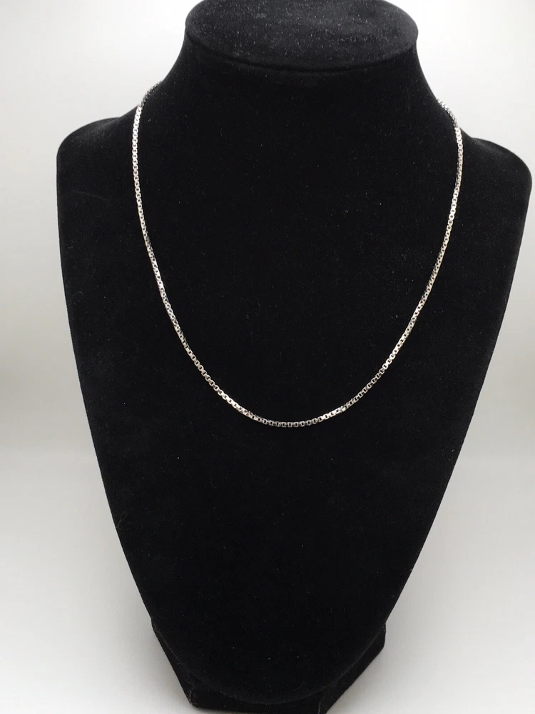 925 Sterling Silver Rhodium Plated Box Chain Necklace Lobster Clasp 16" #1185 Hand polished. No machine cleaning necessary. Measuring Tool not included. Combined Shipping! 1st item $4.59, each additional item is $1. Max shipping cost $10. Combine shipping for up to 7 days! We value YOU! Items are returnable and fully refundable! SilverSchark began as a hobby that grew into a business. We take old retired sterling silver jewelry and revitalize it to wearable condition. Utilizing an ultrasonic machine with sterling silver solution most items are restored to their original beauty. Occasionally scratches are buffed out and some minor repairs are made to bring these tired pieces back to life. Diamonds are always tested. If a piece is not stamped or is suspected of not being sterling silver, the item is acid tested for confirmation. Tests will always be listed in the description. We understand that patina is desired on vintage or antique items so some of the listings will not be cleaned and polished. The description of each listing will tell its tale of restoration. Combined shipping is always welcome! Just ask for an invoice if your cart doesn't look correct. Max shipping cost is $10 per shipment regardless of number of items!