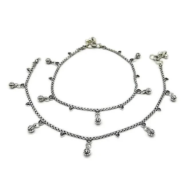 $ 23.243mm Round Wheat Handmade Bali Oxidized 925 Sterling Silver Chain Anklet Bracelet