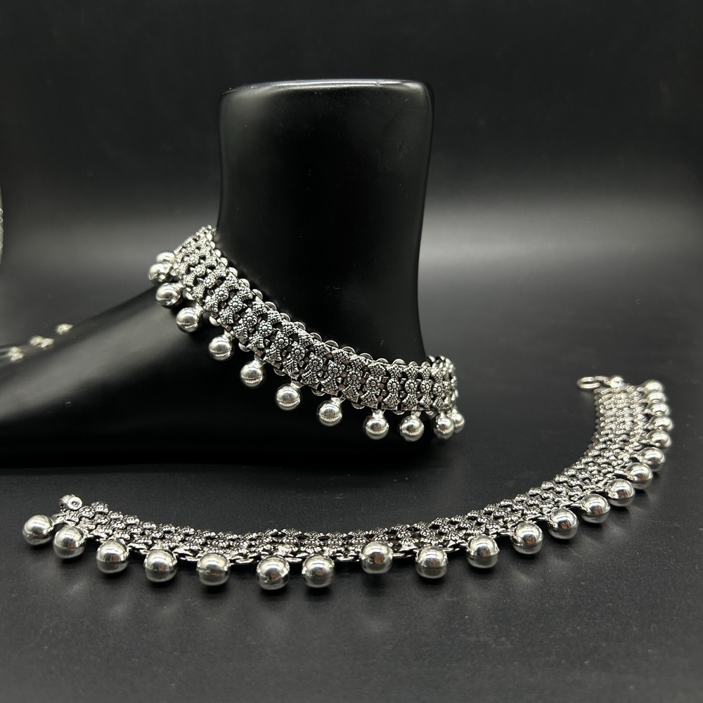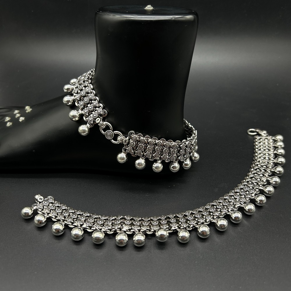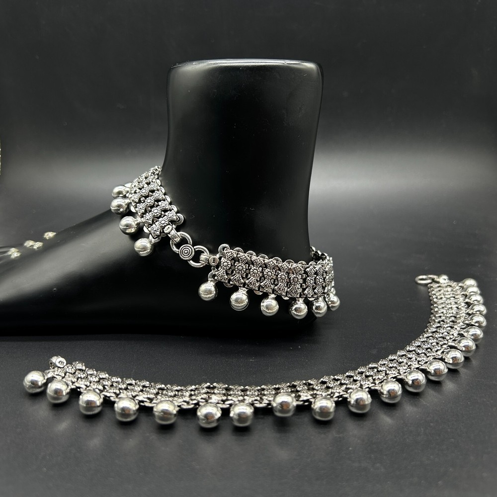 $ 237.6925 Sterling Silver Bridal Anklet Payal Elegant Traditional Jewelry