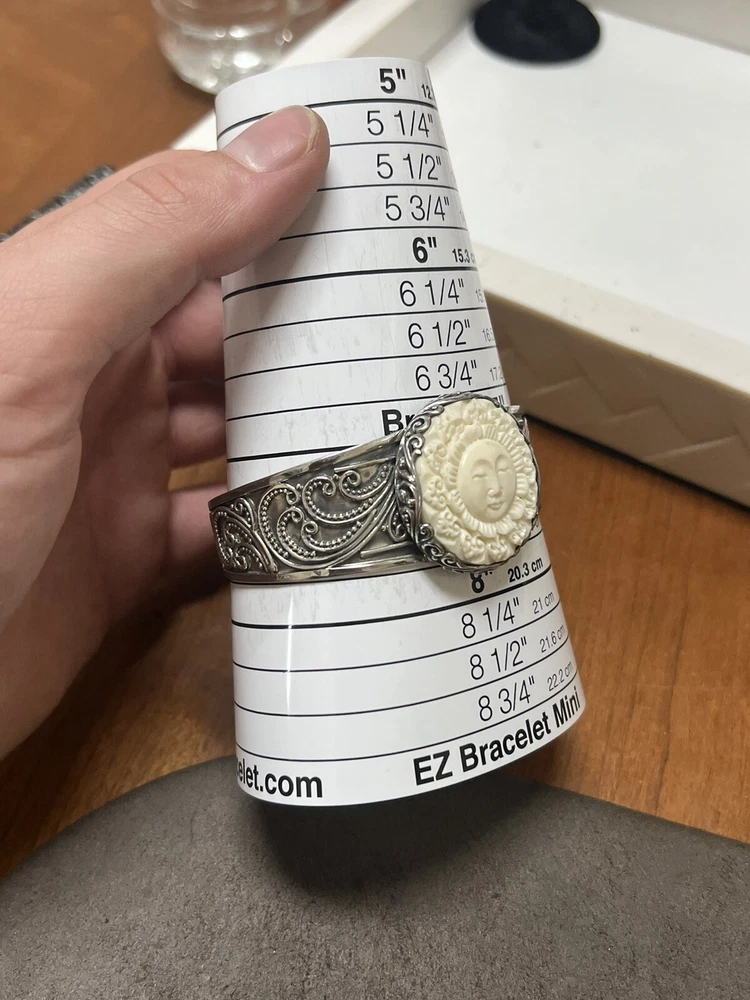 This stunning bracelet is a true work of art. Handcrafted from .925 sterling silver, the Bali Goddess Carved Bone Cuff Bracelet is 8 inches in length and features intricate carvings on the bone material. The piece is perfect for those who appreciate unique and high-quality jewelry, with a style that is both elegant and versatile. The brand, Goddess, is well-known for their exceptional designs and this bracelet is no exception. It is ideal for any occasion and is sure to make a statement.