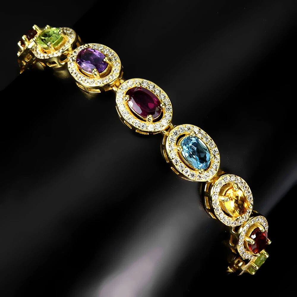 925 Sterling Silver Bracelet Oval Citrine 6x4mm Amethyst Topaz Gemstone Jewelry PRODUCT ID BA2412070150 PRODUCT TYPE Bracelet TYPE OF METAL 925 Sterling Silver PLATE 14k Yellow Gold Ring size/Length (inches) 7 MAIN STONE Citrine OTHER GEMS Amethyst, Simulated Cz, Mozambique Garnet, Peridot, Rhodolite Garnet, Sky Blue Topaz TOTAL weight 10.87 gram (total weight of silver + stone) DIMENSION * STONE 6.0 X 4.0 MM. * CZ 1.0 MM. * TOTAL LENGTH 7.0 INCHES. * FACE BRACELET 160.0 X 8.0 MM. MAIN STONE SHAPE Oval Cut MAIN STONE COLOR Top Rich Yellow CLARITY/GRADE If To Vvs LUSTER Precious TREATMENT Unheated ORIGIN Brazil HARDNESS 7 IF very high quality & Free from inclushions. VVS high quality with very slight inclushions. SI1 Good Quality with slight inclusions visible to the naked eye. SI2 include becoming prominent to the eye. I included. "Delivering excellent with eBay" we accept: PayPal payment which we prefer. FOR US BUYER >>>> PLEASE READ We are genuine seller from THAILAND. All products are originally 100% manufactured in THAILAND. Every items are 100% exported directly from THAILAND. However, we use shipping provider 'Webgistix' who is a US distributor. The items will be allocated from Webgistix's distribution office in Las Vegas, NV by USPS. Please understand that the tracking status will show starting from Las Vegas when you track the items. Feel free to ask for more details. We ship item(s) from Thailand to Worldwide in 24 hr. ( in working day ) after the payment was cleared. $10 - flat rate for a registered airmail, takes 20 - 40 days delivery. Thailand Post stops the service to Latvia, Lithuania, Malta, Moldova, Estonia, Georgia and Israel. Fedex cost up on destination with insure and online tracking. Destinations Asia NORTH AMERICA, CANADA EUROPE (WEST) EUROPE (EAST), SCANDINAVIA, MIDDLE EAST SOUTH AMERICA, AFRICA FEDEX EXPRESS (minimum) $70 $70 $70 $80 $80 Fedex rate will be charged by weight and destination area. A combine package is limited at 10 items within 10 days. Do not send your payment directly, just contact us to request total when you finish bidding (ebay cannot automatic combine items). Any single item weigh over 300ct is not eligible to combine. Buy over US $999 in one payment (10 items within 10days), Get Free FedEx shipment. TAX/CUSTOM: Custom fee is out of seller control. Buyer is responsible for the cost at arrived. Please give us an opportunity when you have questions with item received. Buyer can make agreement on discount or return the shipping in case of damage item. Seller is located in Thailand. So please contact seller for the instruction before return any item. Your communication is most important to solve the problem. International buyers note: Import duties, taxes, and charges are not included in the item price. These charges are the buyer's responsibility. Please check with your country's customs office to determine what these additional costs will be prior to bidding/buying.