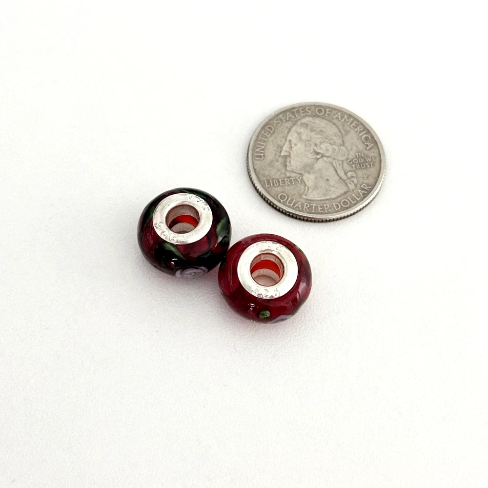 925 Sterling Silver Cherry Red Orange Pink Floral Murano Glass European Charm Lot Of 2 Signed: 925 Very good condition. Compatible with Pandora bracelets, Chamila, Trollbeads, etc. - Fast shipping, I ship the same or next business day! I also combine shipping. - Thank you so much for shopping with me and please check out my other jewelry listings, I post new pieces daily!