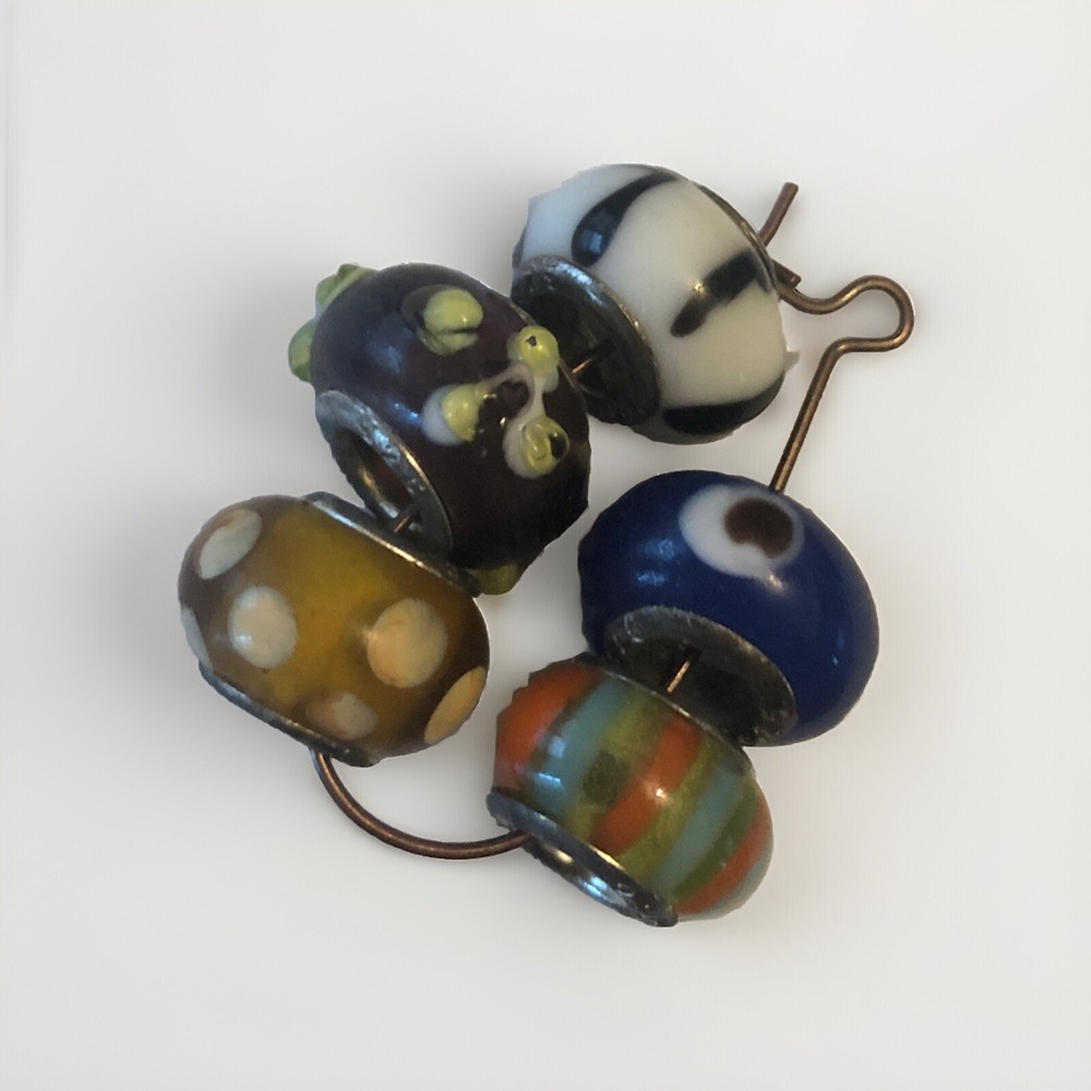 Glass Beads NOS Fit Troll Pandora Etc Marked 925. Condition is New. Old Stock . Shown on oversized kidney hook from about same decade These are 15-20 years old Shipped with USPS Ground Advantage. You get the 5 in the first picture May have tarnish You get 5 in picture Others available