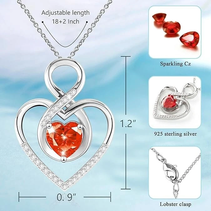 -Brand New - Never Used - Questions: Feel free to ask any Questions - BOX: Never Opened - DESCRIPTION: 【Graduation Gift】Add personalization to gifts for graduate this Graduation season. Heart Necklaces with Birthstone Crystals - Our Infinity Love heart necklace for women is an original design from our PopTopping studio and features a precious birthstone crystal. Unleash the boundless eternal love with our premium infinity heart birthstone Necklace. Impeccably fashioned in shimmering S925 sterling silver, inlaid bling rhinestones and heart shape crystals, every curve of its sculpted infinity love heart pendant necklace whispers of profound devotion 【Infinity Love Heart Necklace】Hand-set with genuine red zircon , this sterling silver heart women necklace features a heart necklace measuring 1.2”x0.9”. The openwork infinity symbol backing the pendant symbolizes unbreakable connections, making it ideal birthstone necklace for women celebrating motherhood, sisterhood, or lifelong partnerships 【Hypoallergenic Luxury for Sensitive Skin】Our silver birthstone necklace for women uses nickel-free rhodium plating polished through 12 meticulous steps. Rounded edges prevent clothing snags, while 7.5 Mohs hardness zircon – perfect necklaces for women needing jewelry that withstands daily adventures from boardrooms to playgrounds 【Best Gift for Women】A unique design mixed infinity and heart shape, make this heart birthstone necklace a unique jewelry gift for women. And Ruby is the birthstone of July, known as the "stone of love", symbolizes the fire of passion and the beauty, eternity, and steadfastness of love. So this birthstone necklace is a perfect gift for mom, wife, girlfriend and also a lovely friend as Mother's Day, Valentine's Day, Wedding,Christmas, Birthday, Anniversary gift. It's the ultimate daily reminder and definition of everlasting love - OFFERS: Reasonable offers are considered, LOWBALLERS, Best price and Lowest askers will be ignored - all sales final/no refunds/ no exchanges/ no returns - Disclaimer: I do not own the brand's trademarks, logos, pictures, or products posted. I do not intend to infringe on copyright. I find such content available on the internet. Contents are considered fair use. -Heart Necklace for Women, 925 Silver Necklace with Red Infinity Heart Pendant, Personalized Birthstone Necklace Anniversary Birthday Gifts for Wife, girlfriend, Mom