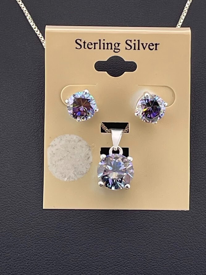 925 STERLING SILVER MYSTIC CRYSTAL NECKLACE 18" & STUD EARRINGS SET NWT 984 ****************************** Thank you for your interest in our jewelry. We?d like to introduce ourselves. We are just a retired couple who love matching our customers with great jewelry. We?re not professional jewelers. To have the best shopping experience we like to recommend the following: Please measure your hand, wrist, finger or neck to ensure the best fit. We can use your measurements to help with sizing. Please ask all the questions you want. We know some stuff and, if we don?t, we?ll do the research. We like to learn too. More Stuff: If an item is described as ?gold over 925 sterling silver? this means it is gold vermeil. Vermeil is the process by which a layer of gold (usually 14k or 18k) is bonded to sterling silver. We only clean with gentle soap and warm water to avoid damage. The items we sell may be new or pre-owned and may have normal wear, slight damage, and/or tarnish. We make every effort to ensure the items we sell are as described. This includes testing to confirm metal purity if the item isn?t marked, and testing for gemstone identity. We try to put measurements in the jewelry description and include a photo of each piece with a U.S. quarter (25mm).