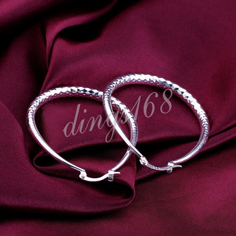 Made with love and attention to every detail from shiny 925 Sterling Silver. These elegant hoops are properly stamped "925" for authenticity. It can be easily matched with everyday wear. Each earrings is 51mm*41mm/ 2.0*1.62 inch wide and weighs 3.85 gram. The earrings are Hypoallergenic and tarnish-resistant. It does not flake off, lose luster or discolor. *** Free gift box included. Product ID: EH796 Metal: 925 Sterling Silver Color: Silver Product Dimension: Diameter: 51 mm*41 mm (2.0*1.62 inch) Width: 1mm - 5mm Weight: 7.7 gram Quantity: One pair of Earrings Note: *** Please always refer to the description for the measurement of the product. Please do not judge the size based on the picture on your screen. The product may look larger or smaller based on your screen size. 100% Satisfaction Guarantee We offer 100% satisfaction guarantee for all products we sell. If you are not 100% satisfied, you may always return the product for full refund or exchange within 60 days of purchase. Shipping & Payment All orders are shipped through USPS(Postal Office) from our warehouse in California, USA within 24 hours after your payment reaches us. For International buyers: We ship to all countries. We pay all shipping charge in full before your package is shipped. For international buyers, you may be collected an fee when the package is delivered. It's an importing tax that your government charges to protect your domestic business and job opportunities. It's the buyer's responsibility to pay the tax. Contact us The best way to contact us is through eBay message by using eBay's "ask a question" link.