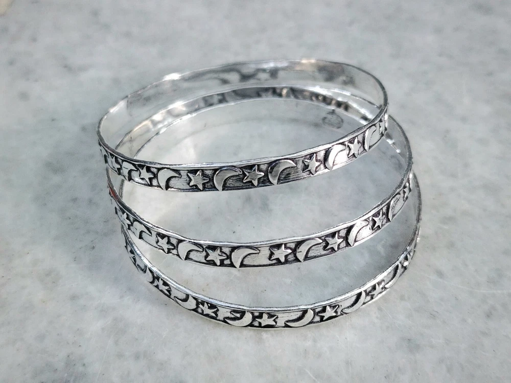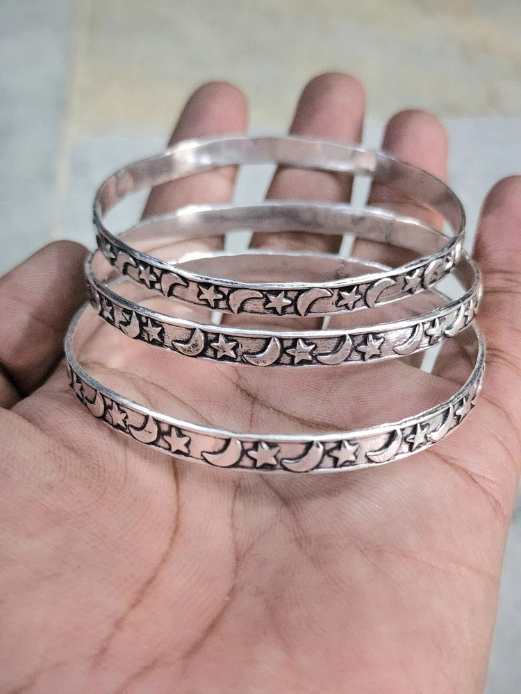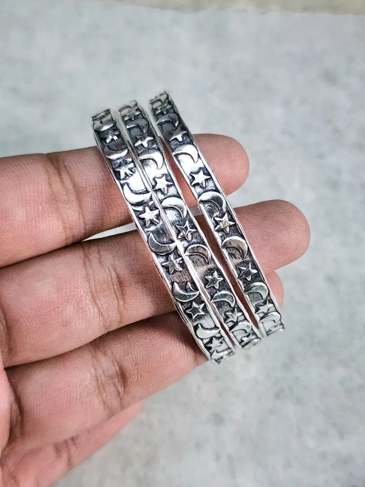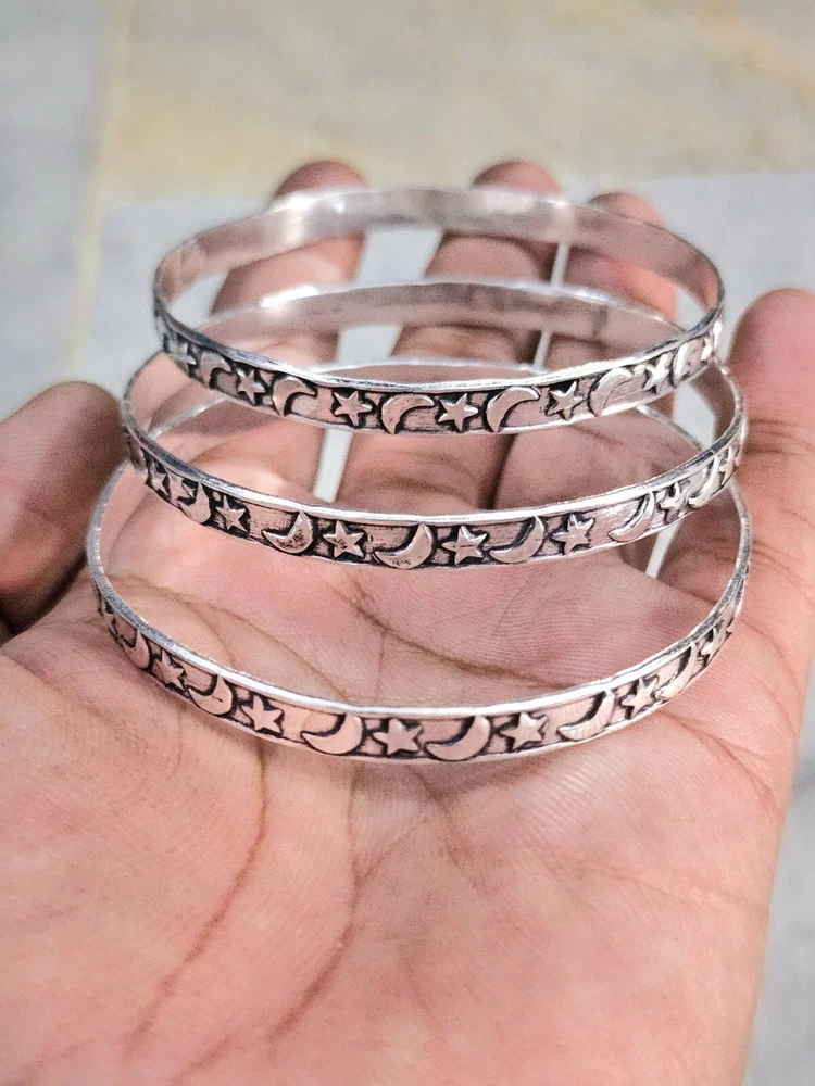 Add a touch of timeless elegance to your jewelry collection with this exquisite 925 Stirling Silver Bangle from bohosilver_jewels2025. Handcrafted with precision, this bangle boasts a unique design that is both captivating and chic. The silver's lustrous sheen, complemented by its sterling quality, makes it a standout addition to any ensemble, perfect for those who appreciate beauty in their accessories. This bangle comes as a set of three, offering a delightful variety to match different occasions or to mix and match for a personalized look. Each piece showcases the fine craftsmanship and attention to detail, ensuring that every wearer benefits from the expertise of Indian artisans. Whether it's a thoughtful gift for a loved one or a special treat for yourself, this bracelet is a testament to both style and quality.