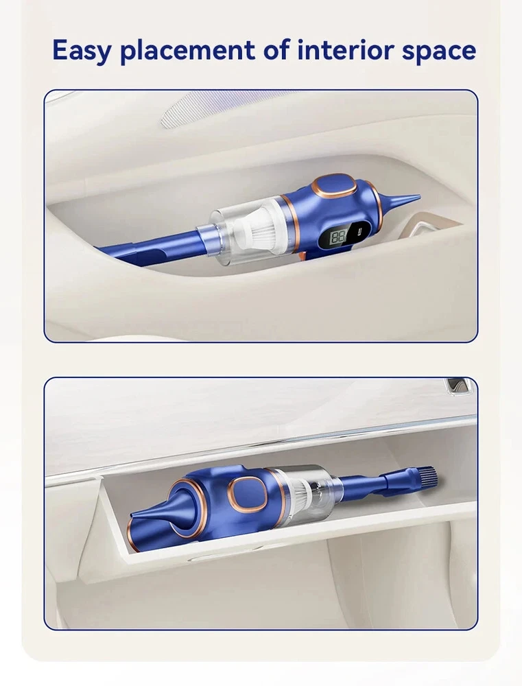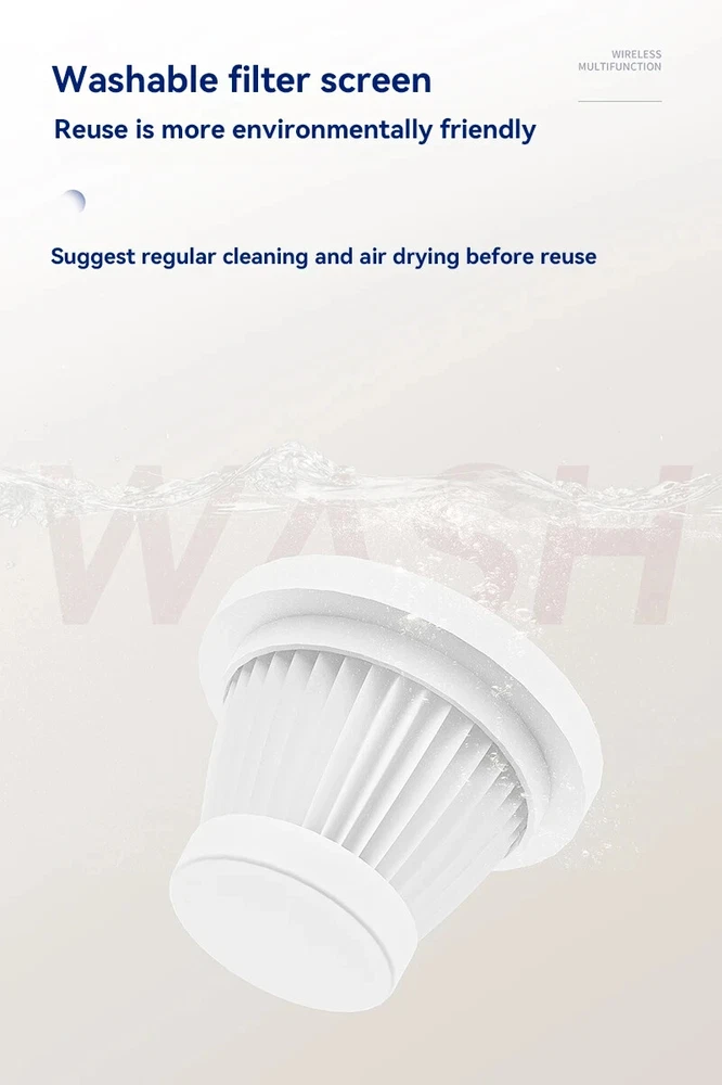 【Upgraded Technology for Ultimate Cleaning Power】 The upgraded cordless handheld vacuum cleaner provides 2 suction modes with powerful cyclone suction up to 15kPa to meet your different cleaning purposes. They are versatile devices that can clean anything from cobwebs to cabinets to car seats. Warm reminder: If wet objects and water are accidentally absorbed, they need to be wiped dry immediately to avoid damaging the engine. 【Lightweight Cordless Design】 This mini vacuum cleaner weighs only 1.6 pounds and comes with a large enough 12 oz dustbin. It can be taken almost anywhere you need it and still work as you intended. Get rid of tangled wires and solve hard-to-reach problems. Their small size allows them to find their place in cupboards, garages, laundry rooms or any other suitable corner. 【Long Battery Life and Fast Charging】 Using multiple 2000mAh lithium-ion batteries and fast charging technology, the battery life can be extended by about 60 minutes after being fully charged. Our fast charging technology includes lithium-ion battery surge protection to ensure safe operation. LED lights on cordless car vacuums are great for lighting up those dark, hard-to-see places. 【Professional Accessories Solve More Cleaning Problems】 The dusting brush and crevice tool can reach most cup holders and car storage compartments. Extension tubes keep dust off baseboards, blinds and pesky cobwebs in ceiling corners. Use additional accessories to cover every inch of your home. Handheld vacuum cleaner with removable, washable and reusable durable HEPA filter. After cleaning the filter, let it dry before putting it back into the vacuum. 【Customer Support】 The handheld vacuum cleaner with stand bag is lightweight and portable, so you can take it wherever you need to clean, even while traveling. You can use it to clean the sand off your tent. If you have any questions or issues about the Cordless Handheld Vacuum, please feel free to contact us. The customer team is always ready for your inquiries and will try their best to help every customer.