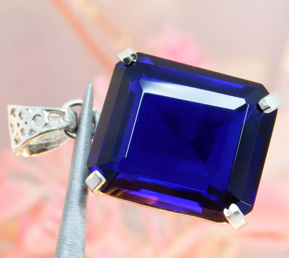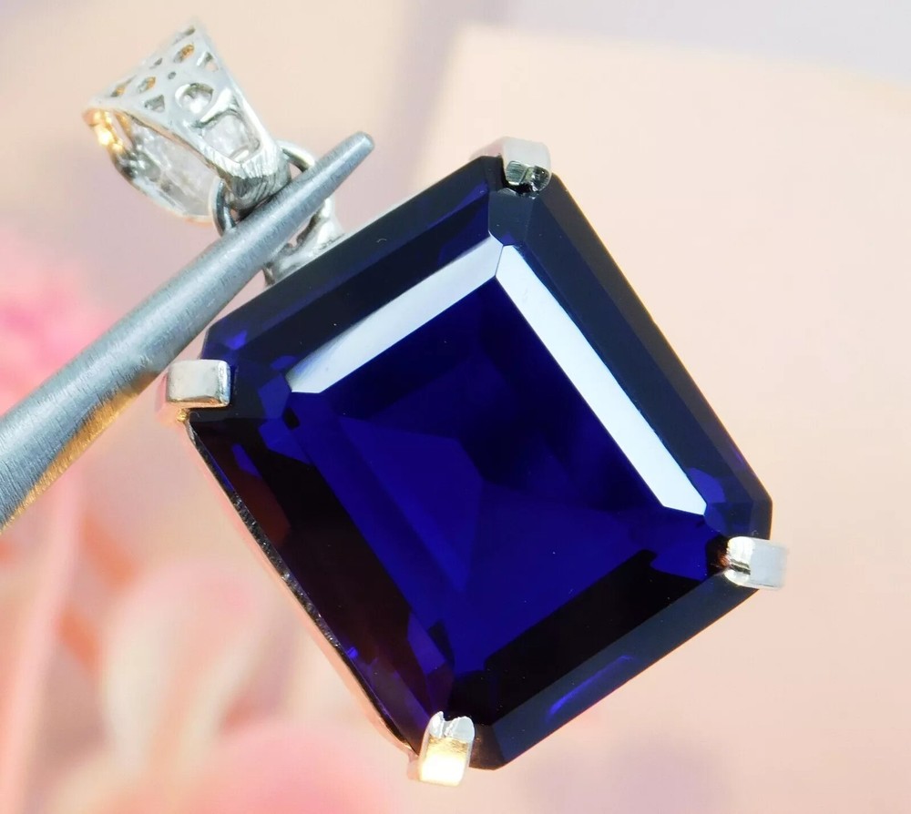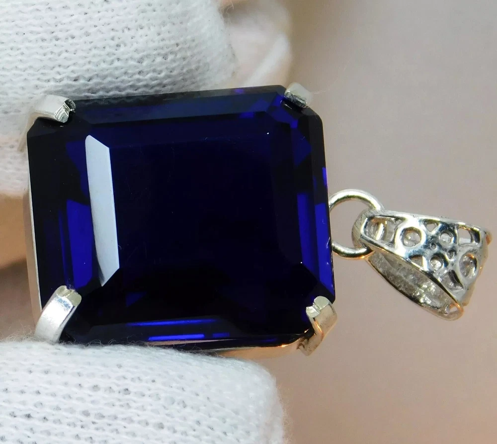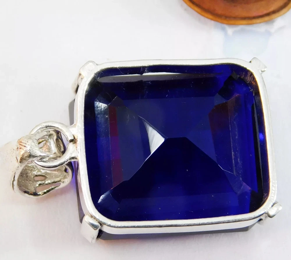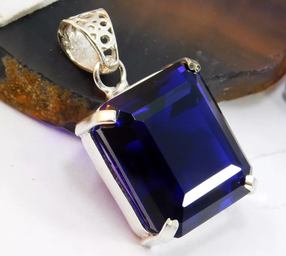 Looks as pictured. Gorgeous dark bluish- purple color. Shipping time not bad. Came, unexpectedly, with a free, smaller pendant. Recommend!