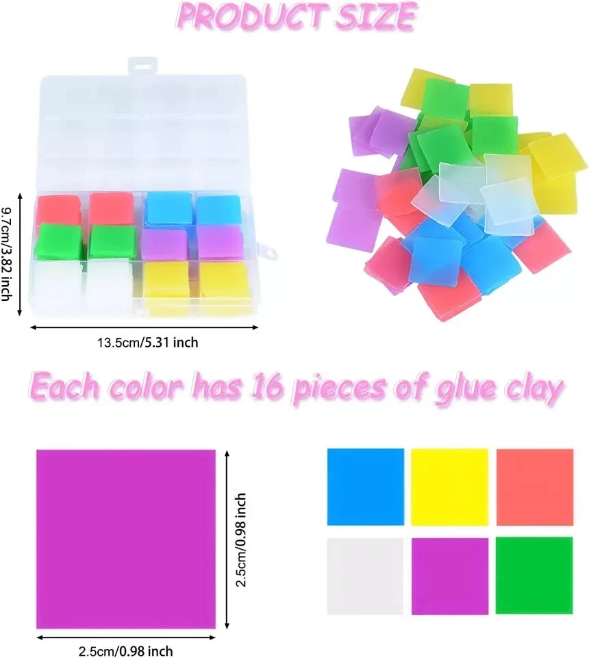 Product Description Ninonly 96 Pcs Diamond Painting Glue Clay Wax, DIY 5D Diamond Art Accessories Tools Supplies Set with Storage Box, 6 Colors