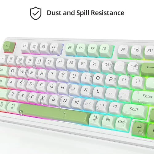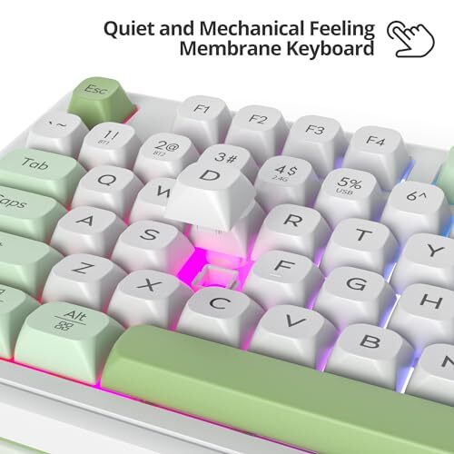 Return Policy Fast Delivery Trusted seller 96% Green Quiet Silent Wireless Gaming Keyboard with Number Pad & Knob, Mechanical Feel, Spill-Resistant, Multimedia Keys, Wired/BT/2.4G, USB Rechargeable Membrane Keyboard for Win/Mac Product Description 【Tri-Mode Multi-Device Connection】This Membrane keyboard offers flexibility through its three connection modes. With Bluetooth 5.0 and 2.4GHz wireless, you can easily switch between up to three paired devices without cables. It also connects via USB wired mode 【12 Multimedia Hot Keys】multimedia keys give you quick access to common functions, provide quick access to commonly used multimedia functions such as play, pause, volume control, and mute without needing to navigate through menus, improve workflow efficiency, particularly for multimedia-related activities 【Dust and Spill Resistance】Its spill-resistant construction and dustproof design make it suitable for everyday use 【26 Keys Anti-Gosting】26 Keys anti-ghosting technology ensure every key press is registered; for precise input in typing and gaming without missing a stroke 【RGB Backlit Gaming Keyboard】This gaming keyboard is designed with vibrant RGB backlighting let you work or play in any setting and promote gaming immersion at night. You can use FN+Ins to change different RGB modes and FN+Backspace to turn off backlight. Alternatively, you can switch to knob control 【Multifunctional Knob】Give you quick access to volume, RGB backlit; By default, the knob controls the backlit mode, allowing you to switch between different backlight settings and adjust the brightness. Pressing it for 5 seconds toggles between volume mute and adjusting the sound up/down, offering convenient control over your audio experience. 【Compatible with Win/Mac】This computer keyboard compatible with both Win/Mac operating systems, allowing users to effortlessly switch between platforms without any setup hassle. Whether you're working on a win or mac device, this keyboard offers consistent performance and functionality; Press FN+W switch to win mode; Press FN+A switch to mac mode Shipping Returns Payment Shipping Shipping is FREE to all addresses other than APO/PO boxes in the lower 48 states. All our stock ships from US-based warehouses. Shipped via USPS or UPS (depending on location and package weight) Unless stated otherwise, all orders will ship within 24-72 hours of your payment being processed. Check our feedback to see the great reviews of FAST shipping we offer. Returns Seller does not accept returns Payment We currently accept payment via eBay managed payments only. Once payment is cleared, we will dispatch your shipment within 1-3 business days. Please refer to the "Shipping" tab for more information regarding shipping speed to your destination.