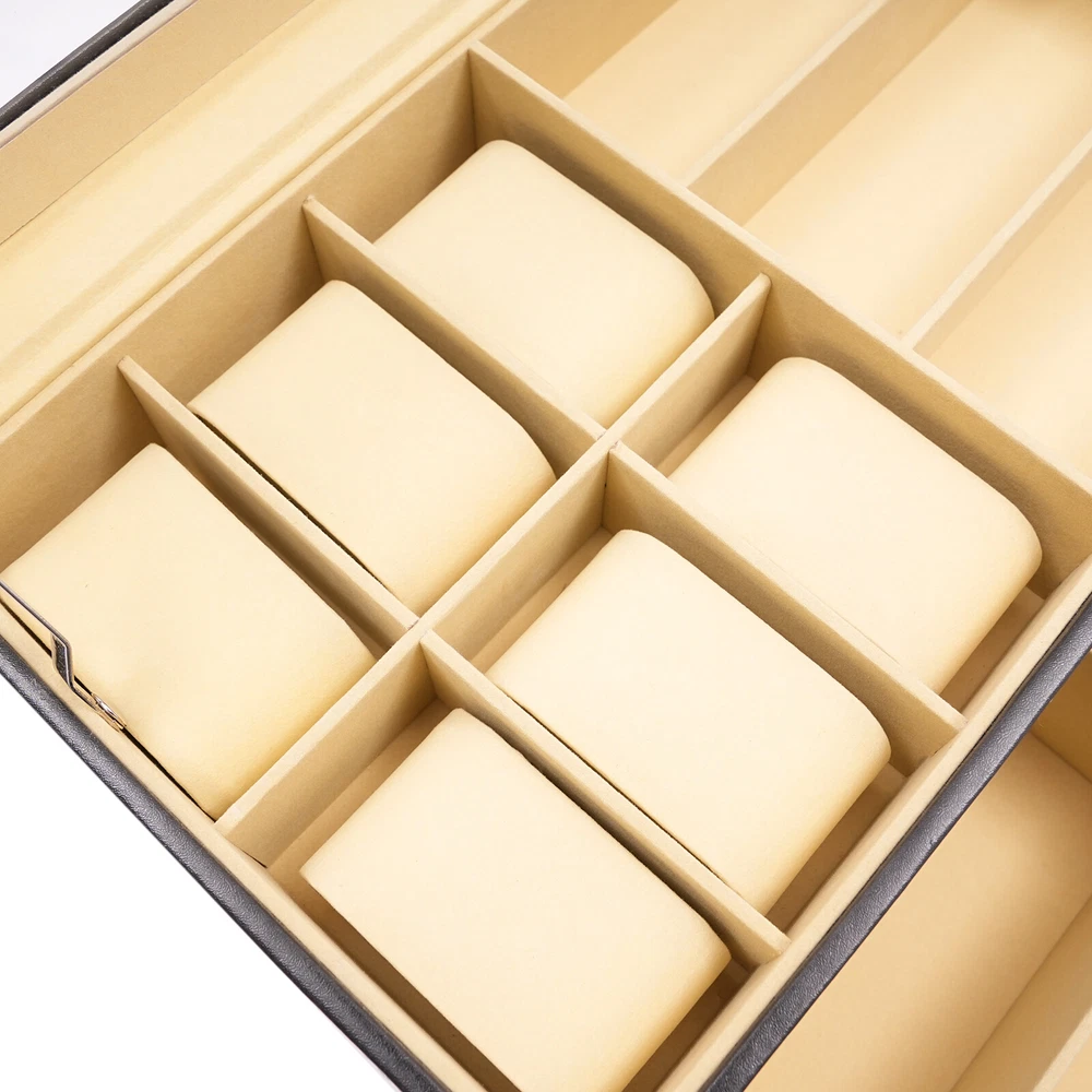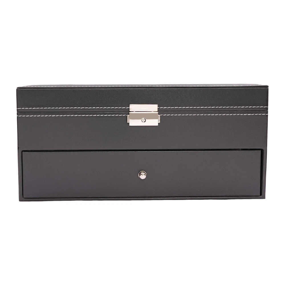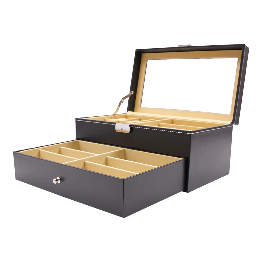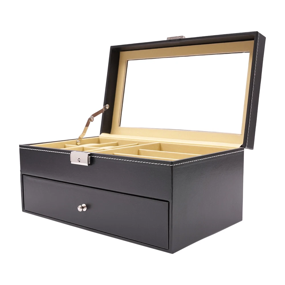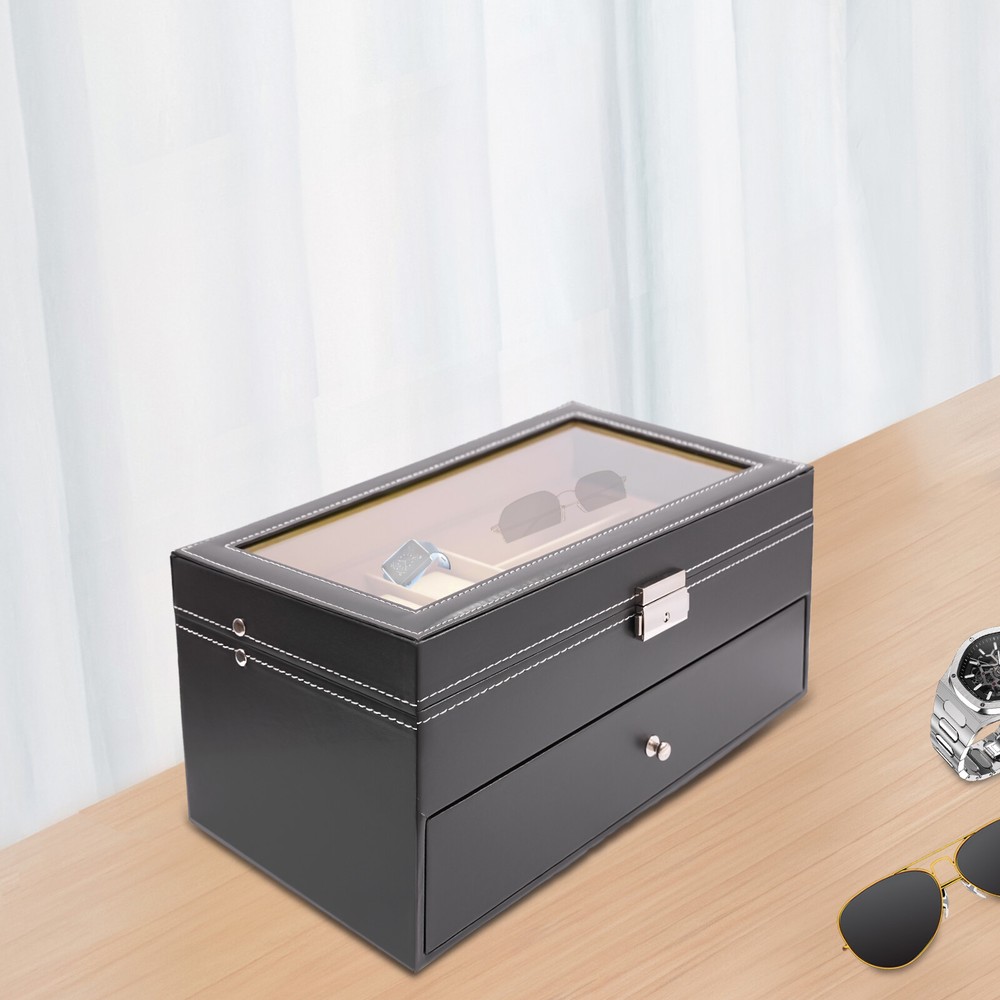 9+6 Slots PU Leather Watch Case Watch Box Organizer Jewelry Display Drawer Gift 9+6 Slots Watch Box Eyeglasses Jewelry Sunglass Storage Drawer Lockable Case Product Features: - High Quality Pu Jewelry Box with Attractive Appearance,Simple Structure,Fine Workmanship and Sturdy Construction - Metal Lock,Black High Grade Pu Surface,Two Levels,First Level Includes 6 Removable Velvet Pillows and 3 Pairs of Glasses,Second Level Includes 6 Separate Compartments to Keep Your Sunglasses and Glasses Organized - It's Divided into Plenty of Unit Space Which Are Easy to Clean and Maintain,It Will Keep Your Watches and Eyeglasses & Sunglasses Securely - This Elegant Jewelry Case Allows You to Show Your Glasses and Watch and Other Jewelry While Protecting Them Away from Dust,Fingerprints,Scratches and Thieves - Clear Glass Top Gives You a Open View and You Can Find Your Favorite Treasure in Seconds with This Unique Jewelry Box.perfect for Home and Business Use,and a Wonderful Gift Idea. Product Specification: - Material: High Grade Pu ,Medium Density Fiberboard - Window: Glass - Color: Black - Product Dimensions (L X W X H): 13.18" X 7.67" X 6.1" (33.5 X 19.5 X 15.5 Cm) First Tier: - Watch Slot Size (L X W X H): 3.1" X1.8" X 1.5" (8 X 4.5 X 3.8 Cm);Slot Size (L X W X H): 6.2" X 2.3" X 1.6" (15.7 X 5.8 X 4.1 Cm) Second Tier: - Slot Size (L X W X H): 6.2" X 2.3" X 1.6" (15.7 X 5.8 X 4.1 Cm) Suits for Storing Watches,Glasses,Jewelry,Cuff Links,Spare Links,Rings,Earrings,Necklaces,Etc Packaging List: - 1 X Jewelry Display Box Payment Delivery details Terms of sales About us Contact us Payment We accept ebay payment 。 Fees such as import duties, taxes are not included in the item price or shipping costs. These charges are the buyer's responsibility. Delivery details Shipping: 2-9 working days to: USA Terms of sales We maintain high standards of excellence and strive for hundred percent customer satisfaction. Feedback is very important to us. We hope that you contact us immediately before you give neutral or negative feedback, so that we can address your concerns. It is impossible to address issues if we do not know about them! About us Your satis faction is our ultimate goal. We work hard to earn your trust and future business. Our certified technicians have tested each item before shipping. The unit comes with 1 year limited warranty on all manufacturing defects. a) If you receive a defective item, you may return it or ask for a discount. Please contact us within 14 days after you receive the package. b) What you returned must be intact and in its original packaging as re? u. Customer is responsible for shipping costs of the returned item. c) We will cover the cost of shipping back t with the shipping rate indicated in the registration page. We will send you a new unit or refund the full payment you paid. Thank you. Contact us Business Hour Business Hour: Monday To Friday: 8:30 AM to 5:00 PM (Beijing China time) Due to time zones, our reply to your questions may not be immediately. But within above working time, we will reply your email within 24 hours. If it's non-workdays, please kindly be patient and wait till Monday. Please contact us with ebay message. Please feel free to contact us if you have any questions. Monday To Friday: 8:30 AM to 5:00 PM (Beijing China time) Due to time zones, our reply to your questions may not be immediately. But within above working time, we will reply your email within 24 hours. If it's non-workdays, please kindly be patient and wait till Monday. Please contact us with ebay message. Please feel free to contact us if you have any questions. Tips If you have any questions, please contact us! Brand Unbranded Country/Region of Manufacture Unknown Note Do not send to the Canary Islands Shipping notice Can not ship to Puerto Rico/Alaska/Hawaii Material High Grade PU Leather,Medium Density Fiberboard Size 13.18" x 7.67" x 6.1" (33.5 x 19.5 x 15.5 cm) Type BOX Color Black Capacity 9+6 Slots Year Manufactured 2010-Now Personalize No Vintage No Handmade No Personalized No UPC Does not apply MPN Does not apply On Feb 25, 2025 at 22:19:55 PST, seller added the following information: