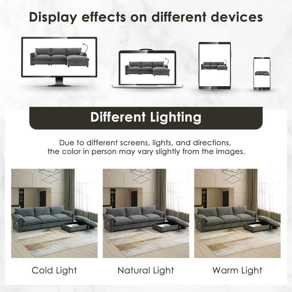 Oversized Multifunctional Storage Ottoman: The sofa features an exceptionally large 32.5-inch ottoman that offers both comfort and practicality. This multifunctional piece can be used as a footrest or extra seating while also providing hidden storage space. It’s perfect for stowing away blankets, books, or other essentials, helping to keep your living area tidy and organized. Adjustable Phone Holder: Designed with convenience in mind, this sofa includes an adjustable phone holder. Whether you’re watching videos, making video calls, or just keeping your phone within easy reach, this flexible holder allows you to position your phone at the ideal angle for comfort and hands-free use. Type C + USB Charger: Stay connected without having to get up! The sof... [VIDEO+NEW]96.5'' Chenille Sectional Sofa with Storage Ottoman and Pockets,Adjustable Phone Holder,Wide Seat,4 Seat L Shaped Couch Set,Comfy Sofa with USB Charger for Living Room,Apartment,3 Colors Oversized Multifunctional Storage Ottoman: The sofa features an exceptionally large 32.5-inch ottoman that offers both comfort and practicality. This multifunctional piece can be used as a footrest or extra seating while also providing hidden storage space. It’s perfect for stowing away blankets, books, or other essentials, helping to keep your living area tidy and organized. Adjustable Phone Holder: Designed with convenience in mind, this sofa includes an adjustable phone holder. Whether you’re watching videos, making video calls, or just keeping your phone within easy reach, this flexible holder allows you to position your phone at the ideal angle for comfort and hands-free use. Type C + USB Charger: Stay connected without having to get up! The sofa is equipped with both a Type-C and a USB charging port, enabling you to charge your devices easily while relaxing. These convenient ports are built right into the sofa, making it easier than ever to power your phone, tablet, or other electronics without the need for extra cables or plugs. Storage Pockets on Both Armrests: Each armrest is designed with practical storage pockets, offering a space-saving solution for items you need close by, such as remotes, magazines, or your phone. This thoughtful design helps eliminate clutter around your sofa and ensures that essentials are always within reach. Armrest Pillow Design: The sofa features soft, cushioned armrest pillows that enhance the overall comfort. These pillow-like armrests provide added support for your arms and elbows, allowing for a more relaxed and comfortable sitting experience. They also bring a cozy and stylish touch to the design of the sofa. Extra-Wide Seat: The sofa boasts a generous 29.5-inch seat width, offering ample space for you to sit comfortably. This extra-wide seat ensures that you have plenty of room to stretch out, whether you’re lounging alone or sharing the space with someone else. It provides a luxurious and spacious seating experience, perfect for long periods of relaxation. Item Specifics Brand Unbranded Type sofa Color Gray Upholstery Fabric Chenille Item Length 34 in Item Width 30.25 in Item Height 17 in About us Dear buyer, Thank you for visiting my store! Our warehouses are located in many regions around the United States. According to the customer's delivery address. Use USPS/UPS/DHL logistics transportation service. Prioritize the best quality logistics solutions to transport packages. Ensure package delivery time, At the same time. Have any after-sales problems, Feel free to contact us. At your service Payment PayPal is our preferred method of payments it's the quickest, easiest and most secure way to pay for your goods or services online. PayPal offers buyer and seller protection should there be a problem. If you do not have a PayPal account, to get started and buy your first item with us is very easy. Simply click on the 'Buy It Now' button and follow the eBay checkout steps. Select PayPal as the payment method you then will be given the chance to enter your card details in to PayPal's secure checkout in order to pay for your order. Shipping 1. Your purchase is shipped directly to you as soon as we have received your cleared payment. 2. Normally all of parcels would be shipped within 3days(From Monday to Saturday). 3. We will send information on eBay or email if the parcel was delayed due to our holiday. 4. We provide three kinds of shipping for choice. Shipping way depend on delivery address. Returns If an unit is received defective, of course we take it back or replace it. If the unit is received as expected, we must charge for our expenses if you want to send it back. We have to charge for the work of handling, retesting and restocking. DESCRIPTION PAYMENT SHIPPING RETURN POLICY CONTACT US Shop Category Store Home Other Hot Item Fox DropFrame Pro Mips 2.0 Bike Helmet USD 279.95 Flextreme 5/8 in. Dia x 50 ft. Black Performance Rubber Garden Hose USD 46.70 Co-op Cycles DRT 1.1 Mountain Bike USD 419.29 5.5 cu. ft. Heaped Poly Smart Plastic Garden Cart USD 70.98 6 cu. ft. Steel Tub Wheelbarrow with Wooden Handles and Pneumatic Tire USD 113.90 Delivery New List Item COOLMORE Corduroy Swivel Barrel Chair, Comfortable Accent Sofa Chair for Living USD 548.52 COOLMORE Corduroy Swivel Barrel Chair, Comfortable Accent Sofa Chair for Living USD 548.52 COOLMORE Corduroy Swivel Barrel Chair, Comfortable Accent Sofa Chair for Living USD 548.52 COOLMORE Corduroy Swivel Barrel Chair, Comfortable Accent Sofa Chair for Living USD 548.52 COOLMORE Corduroy Swivel Barrel Chair, Comfortable Accent Sofa Chair for Living USD 548.52 Help & Info Payment Policy Shipping Policy Return Policy FAQ About Us [VIDEO+NEW]96.5'' Chenille Sectional Sofa with Storage Ottoman and Pockets,Adjustable Phone Holder,Wide Seat,4 Seat L Shaped Couch Set,Comfy Sofa with USB Charger for Living Room,Apartment,3 Colors Oversized Multifunctional Storage Ottoman: The sofa features an exceptionally large 32.5-inch ottoman that offers both comfort an