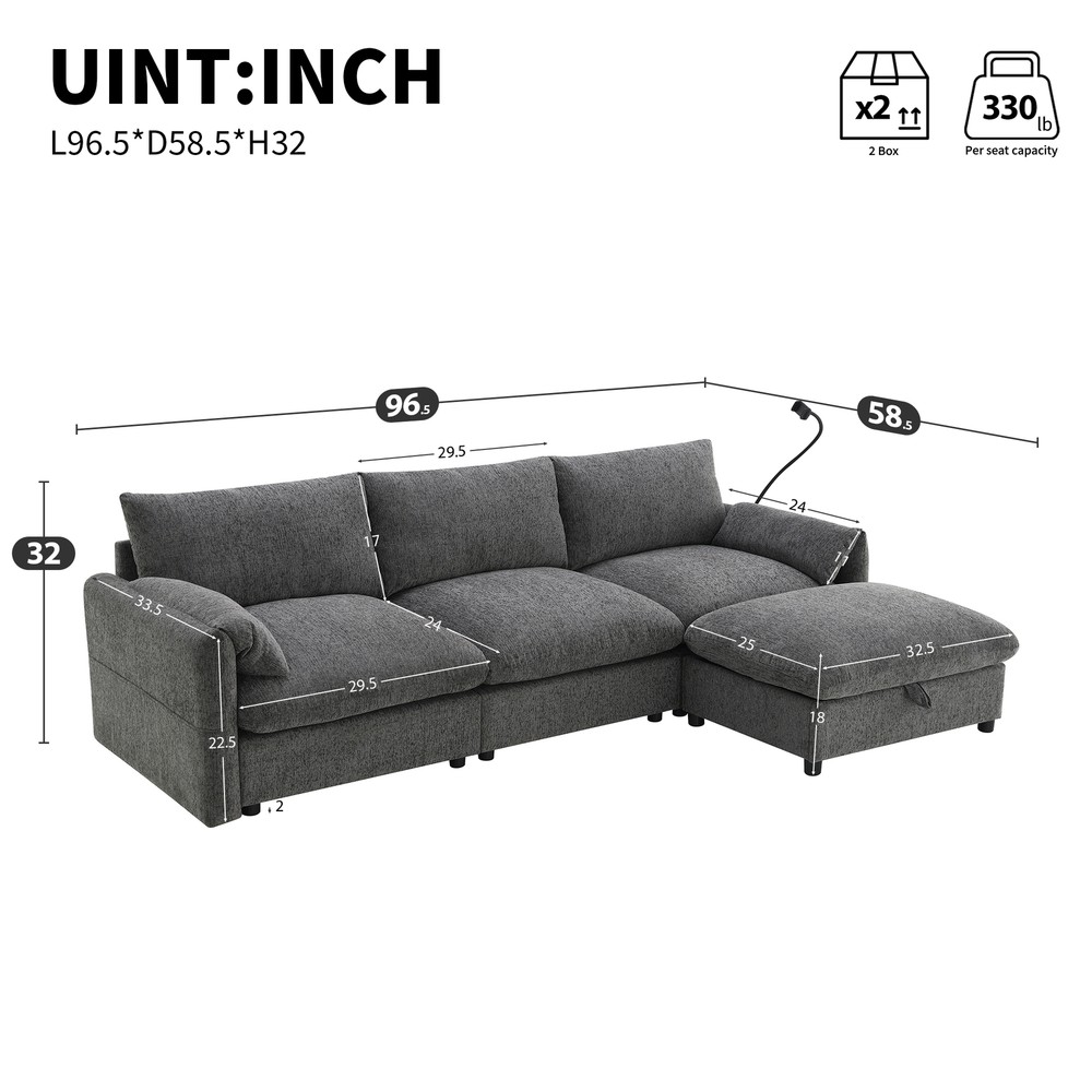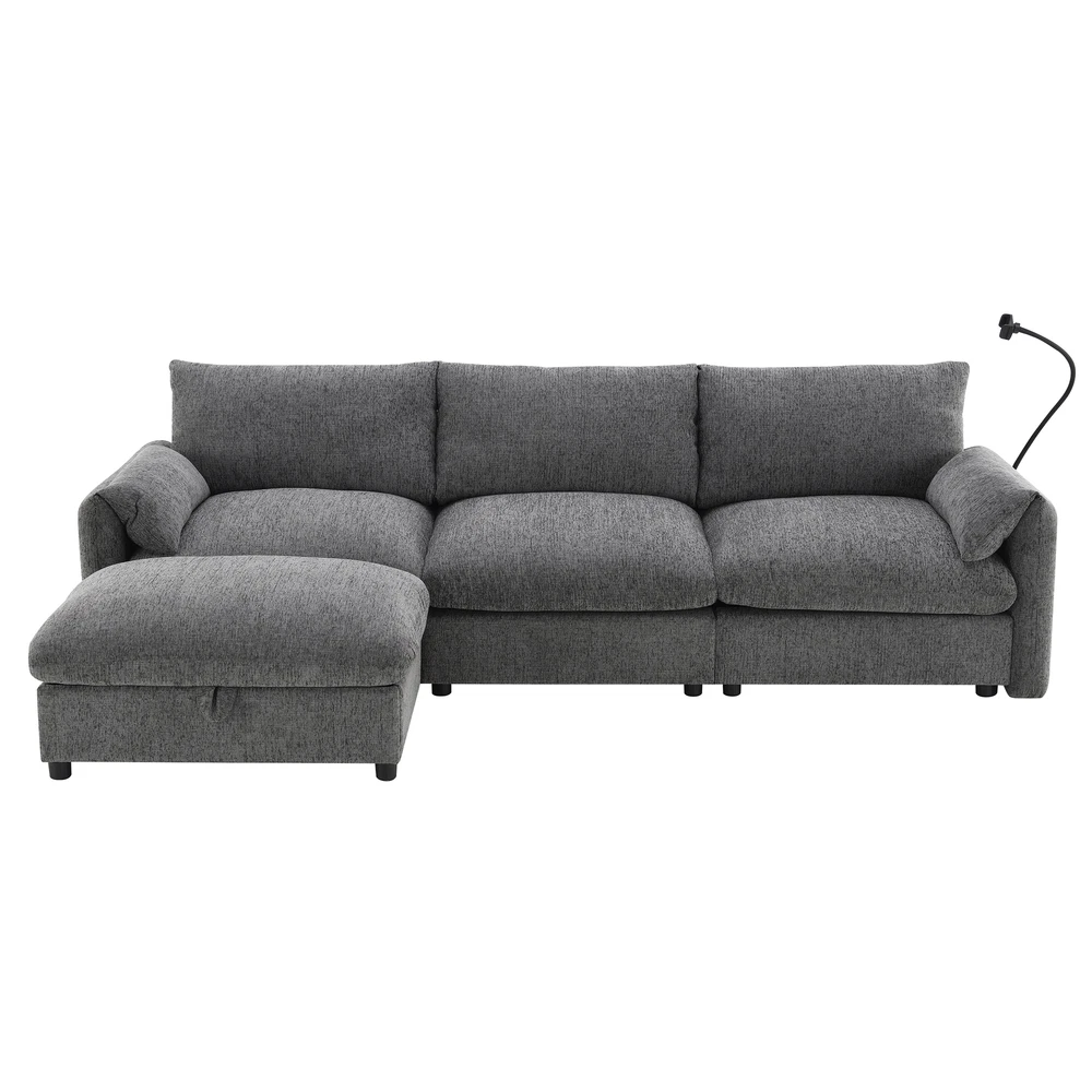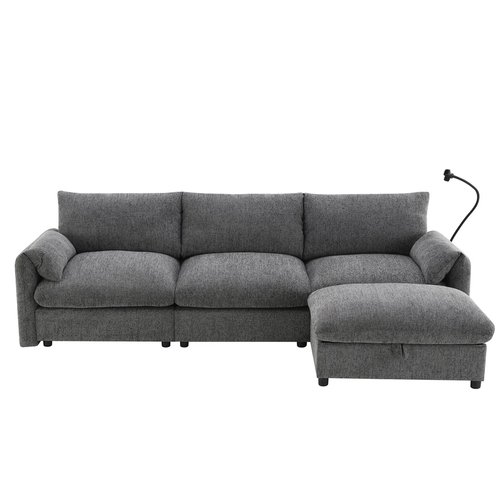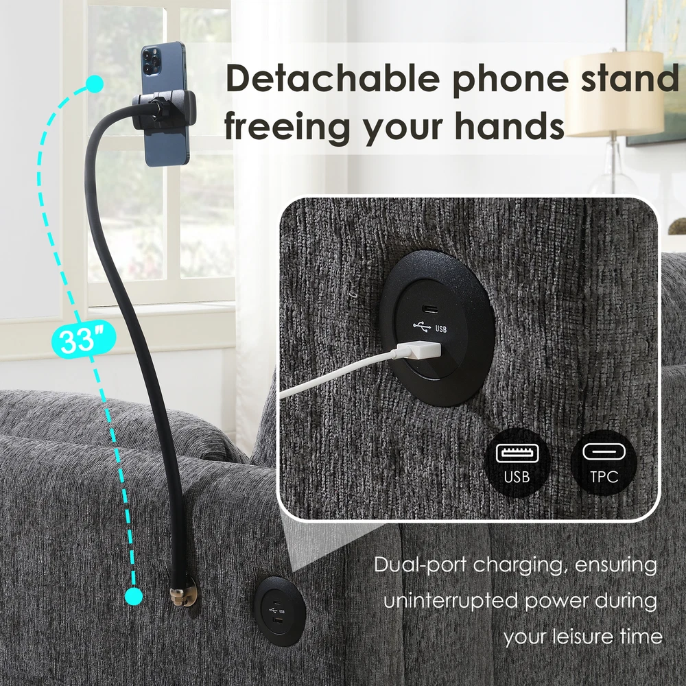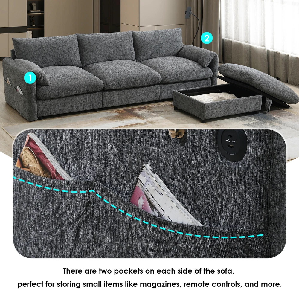 This sectional sofa is a game-changer! The oversized ottoman is super comfy for lounging and doubles as handy hidden storage—perfect for keeping clutter out of sight. Love the adjustable phone holder for binge-watching or scrolling hands-free. The deep seats and soft chenille fabric make it ultra-cozy, while the side pockets add extra convenience. Great for small spaces or movie nights—so functional and stylish!